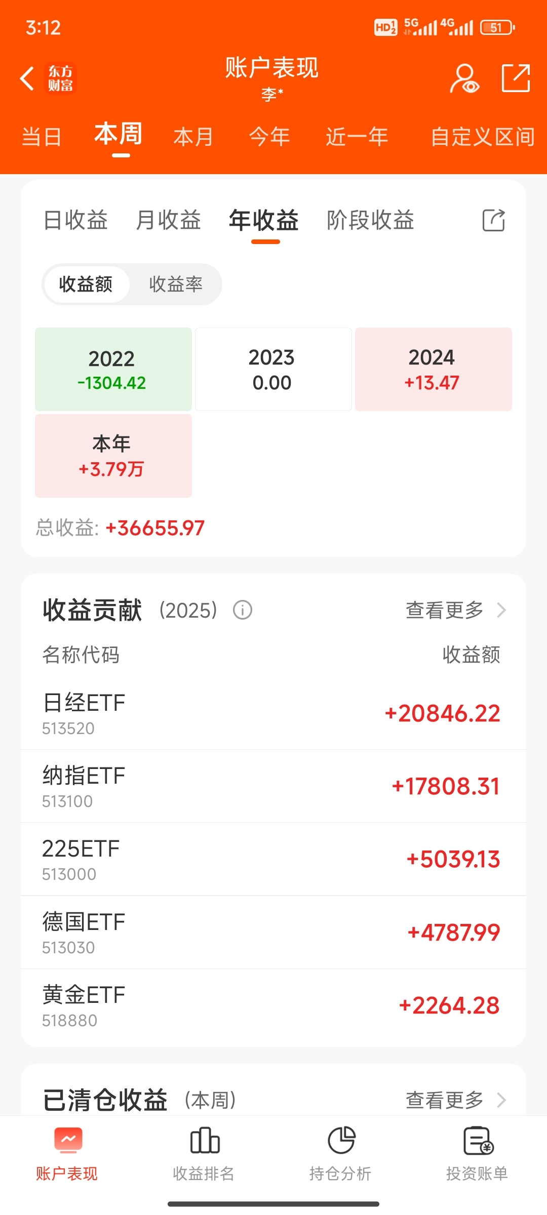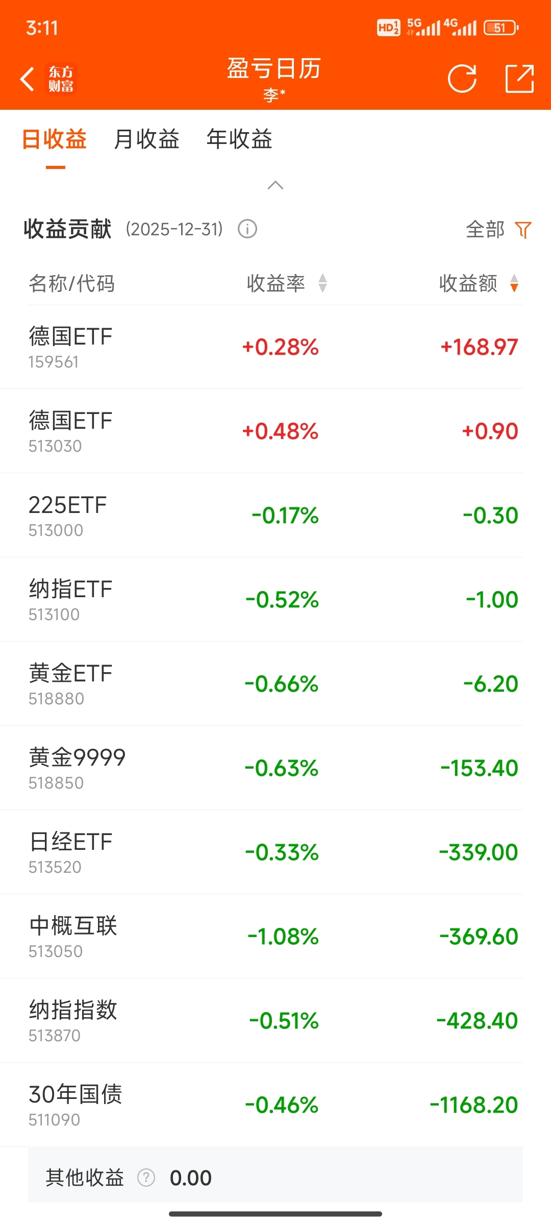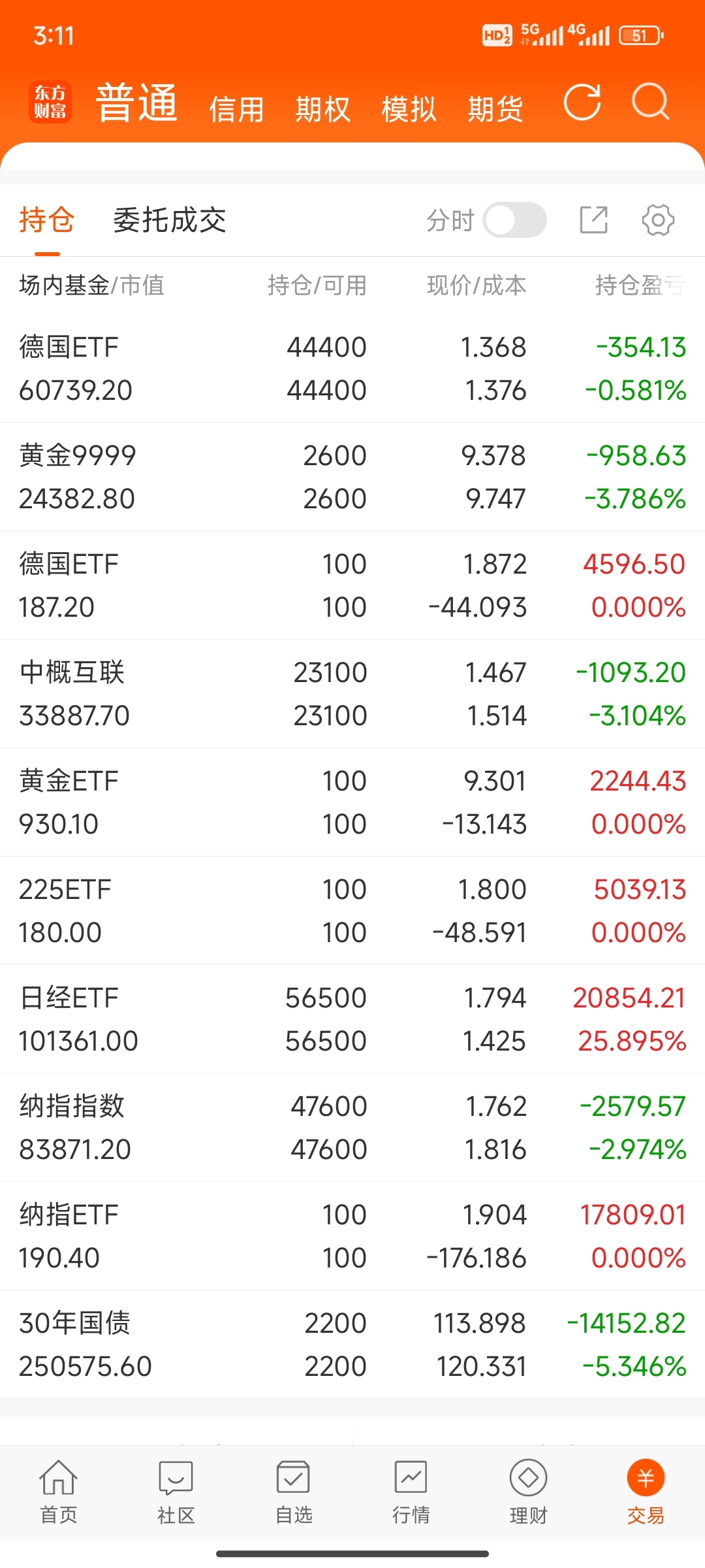 定投第257天,买入德国ETF,1400股,今日盈亏-2296,总盈亏+31404。