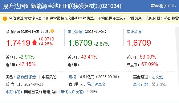 对于固态电池,我看好的是易方达国证新能源电池ETF联接发起式C,这个品种跟踪的是国证新能源电池指数,跟其他电池指数的核心差异是储能电池占比高,国外现在大力发展人工智能,到头来即发现原来能源支持是不足的,这就导致储能行业在人工智能发展的大环境下是不能绕过去的一环,固态电池作为下一阶段科技的发掘主线,我认为还有不少的发展空间,继续走强是大概率事情。