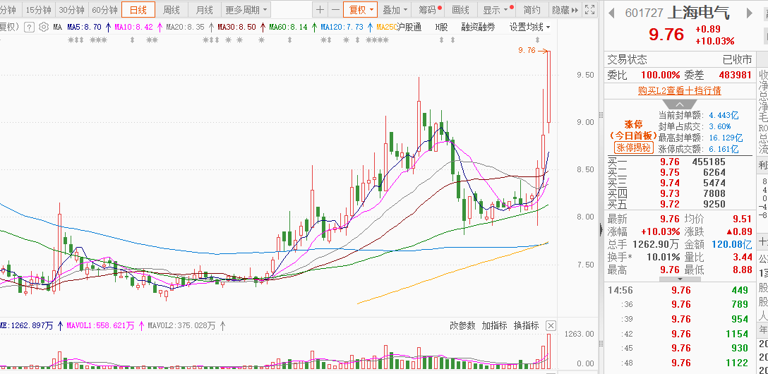 上海电气:核聚变概念,当前正在上海举行的第二十五届中国国际工业博览会上,注册资本150亿,正式挂牌成立仅两个多月的大陆巨变能源有限公司首次公开亮相,展示其技术路线和业务布居,该公司瞄准2050年聚变能源商用目标,在上海成都两地联动研发,多为国内可控核聚变领域先关人士正式,我国核聚变公司将新建巨变实验装置“环流四号”。上海电气是国内磁约束核聚变主机系统配套醉拳的设备制造商,周四首板涨停,4个多亿封单,股价突破近期9.5的双高压力,上涨空间打开,放量涨停,有加速迹象,压力突破后下一个压力是历史高点12.3附近空间足够。