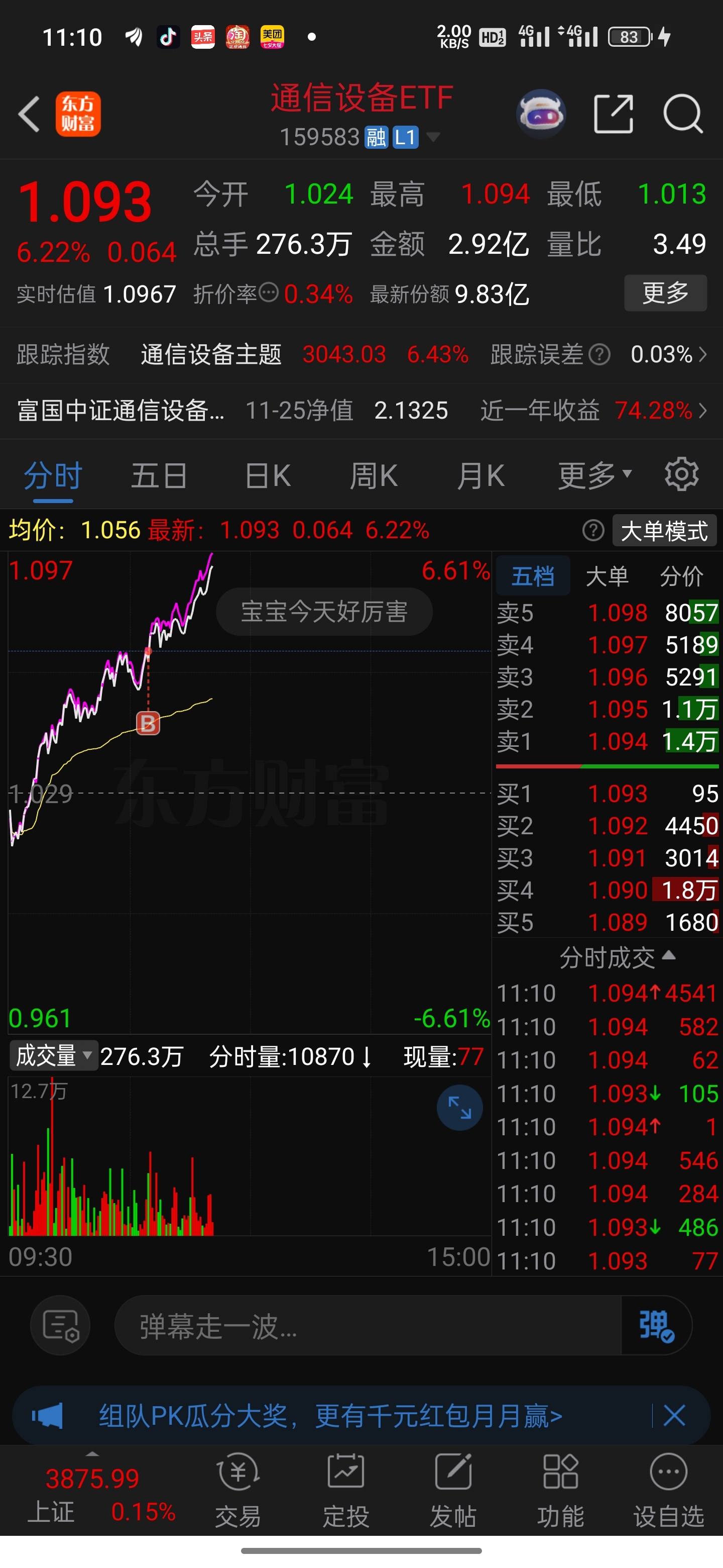 $通信设备ETF(SZ159583)$ 冲。就算不能过前高后续做网格