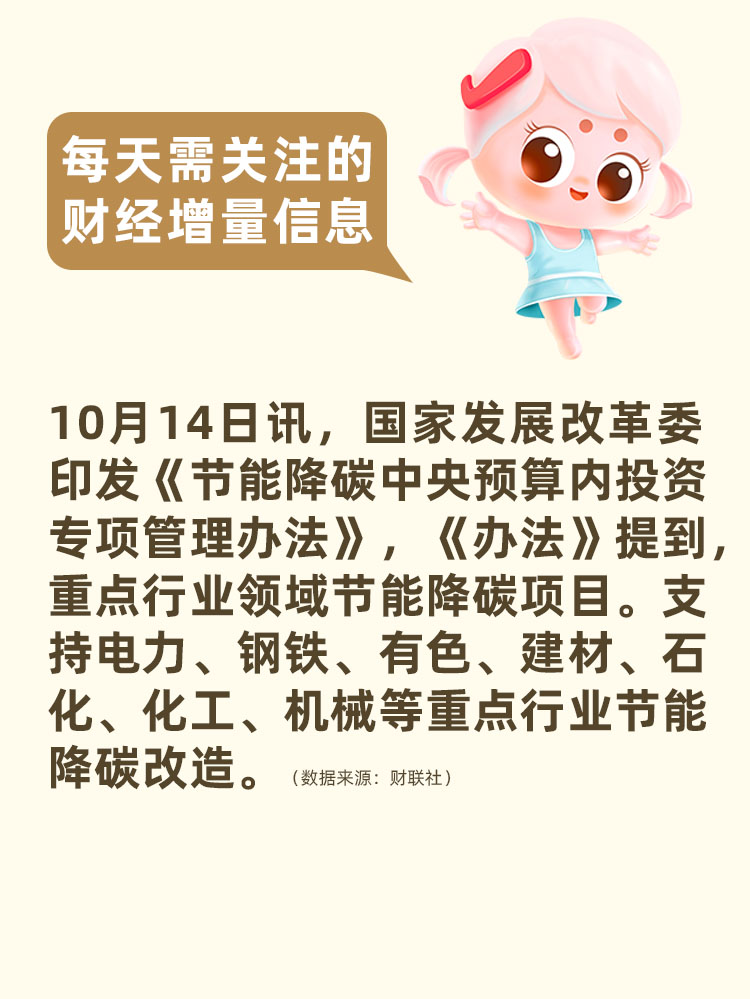 【每天需关注的财经增量信息】发改委印发《节能降碳中央预算内投资专项管理办法》
