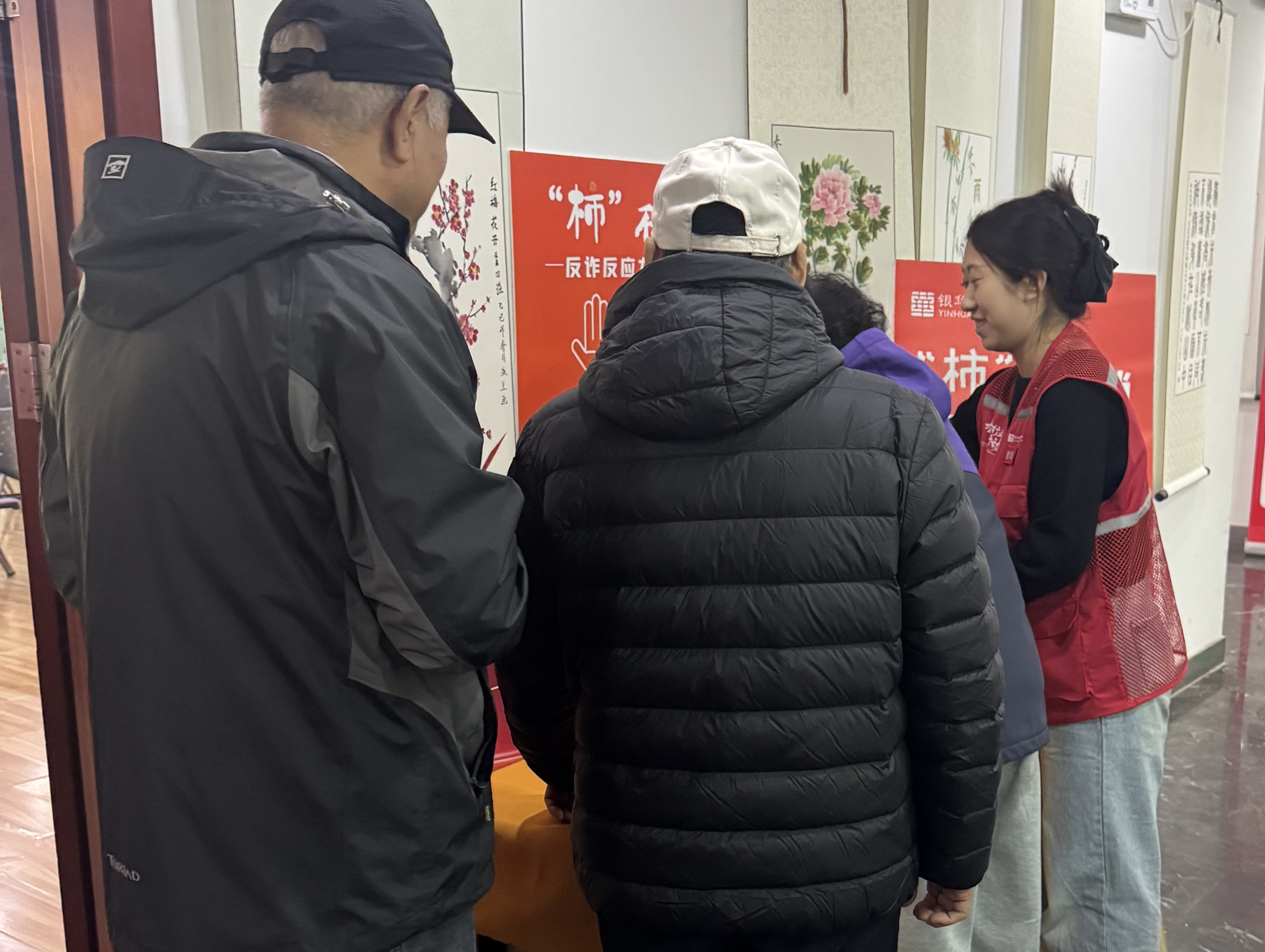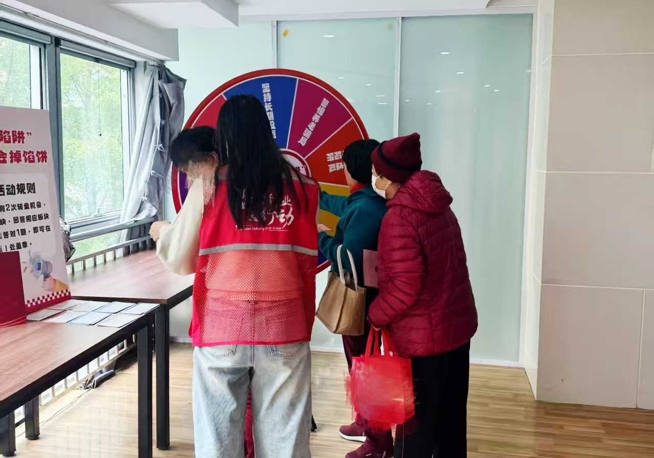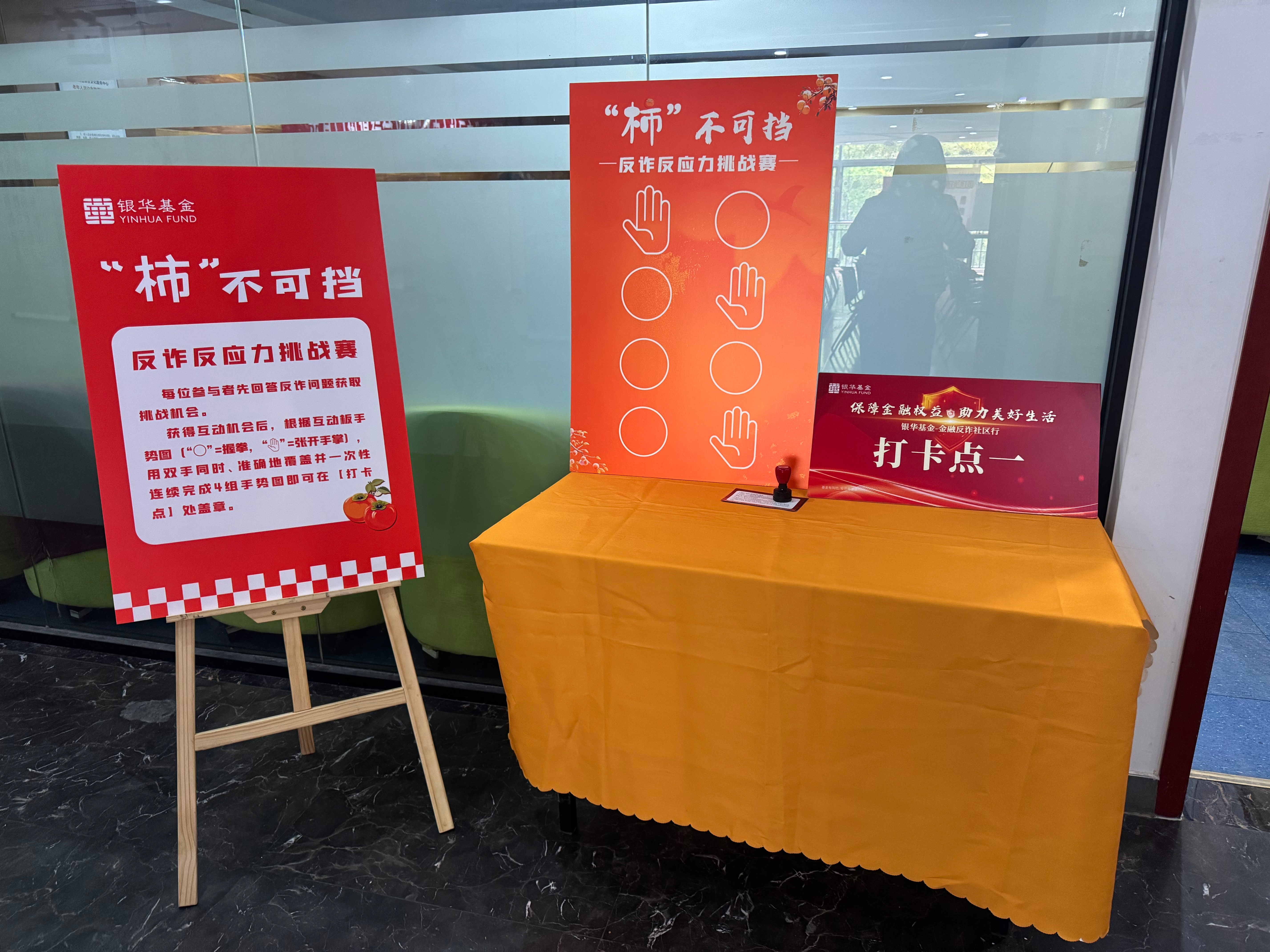 本次活动以“打卡闯关+主题宣讲”为主线,设置4个特色打卡点,居民需凭“圆点活动贴纸”与“盖章卡片”参与互动、集齐印章,四个特色打卡点各有巧思。其中,打卡点一“投资者行为偏差”环节,居民随机抽取印有真实案例的答题卡片,在“为什么‘拿住亏损、卖掉盈利’不可取”等趣味提问中,轻松了解投资中的行为误区;打卡点二紧扣霜降节气,“‘柿’不可挡反诈反应力挑战赛”充满温度——居民通过答题解锁挑战、完成互动手势图等方式赢得通关奖励;打卡点三“当心陷阱天上不会掉馅饼转盘活动”,居民通过转盘获得答题机会,答对选中板块的反诈问题即可盖章,内容聚焦养老骗局、虚拟货币陷阱等高频风险场景。