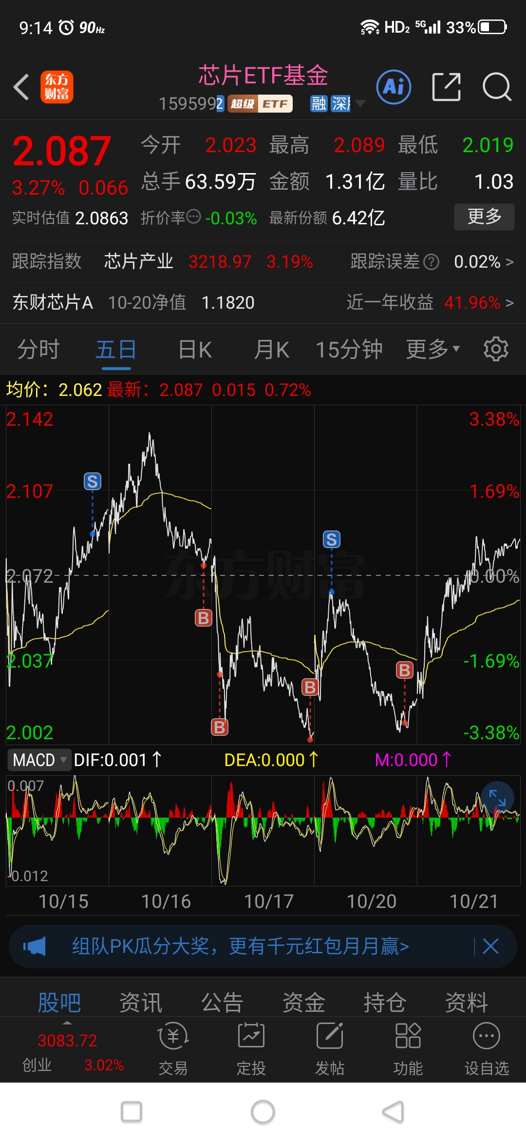 $芯片ETF基金(SZ159599)$ 哇口哇口!干就完了兄弟们#收盘点评# #炒股日记# #复盘记录#