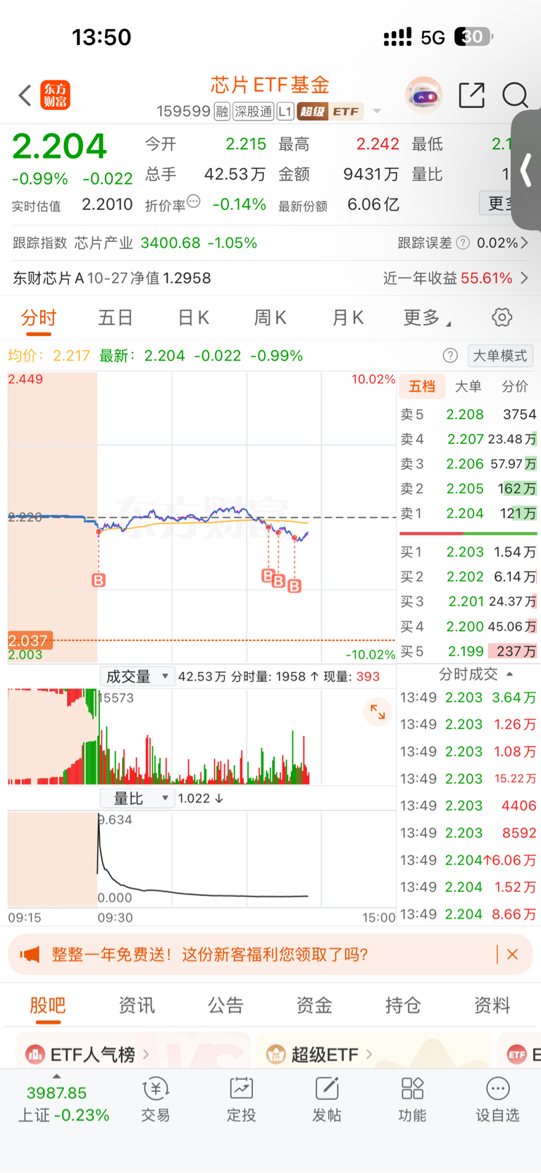 $芯片ETF基金(SZ159599)$ 掉下来我就买买买