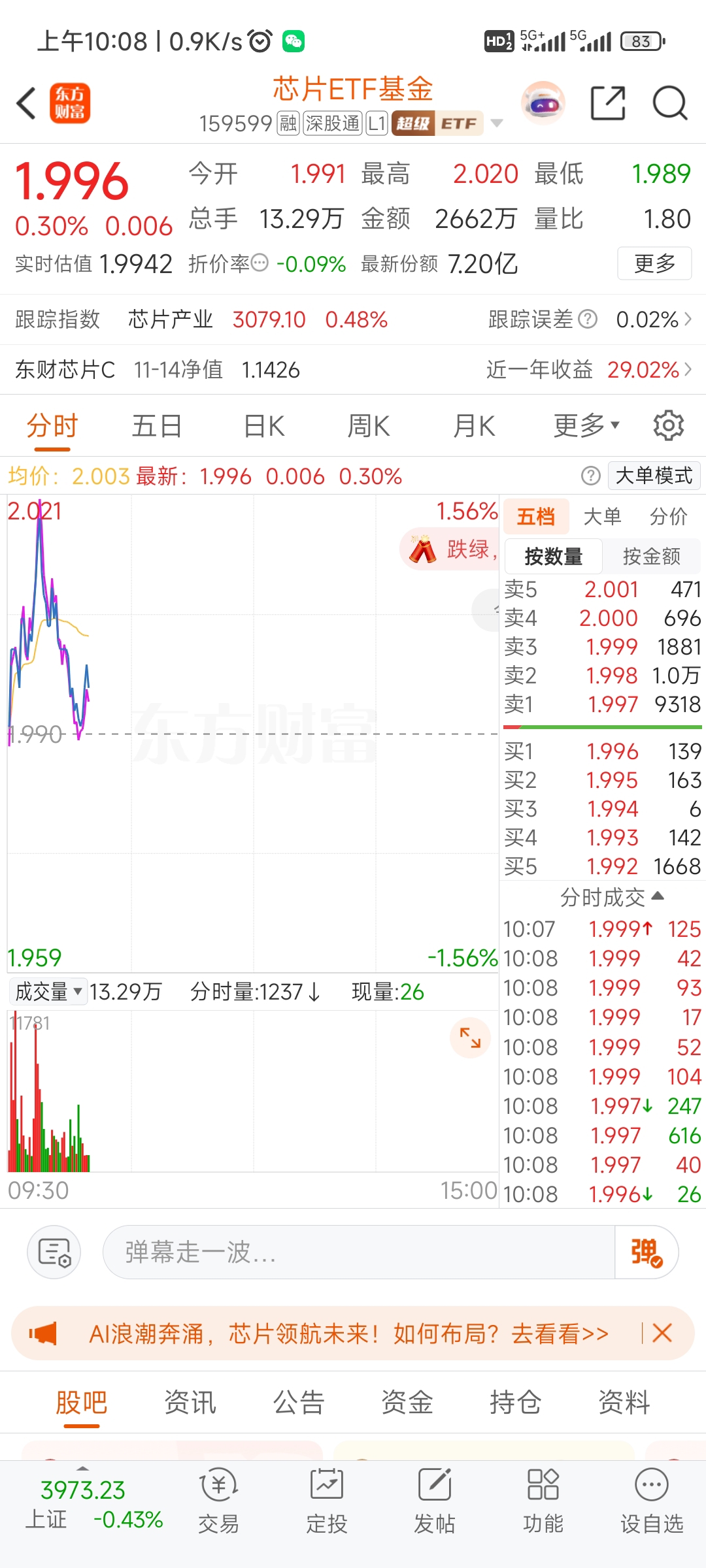 $芯片ETF基金(SZ159599)$ 8万手 怎么没跟上???