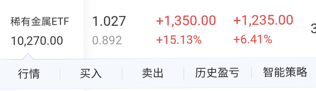 $稀有金属ETF(SZ159608)$ 上周五,第1次买这个玩意。看位置挺高,不敢买多,居然也有了收益。