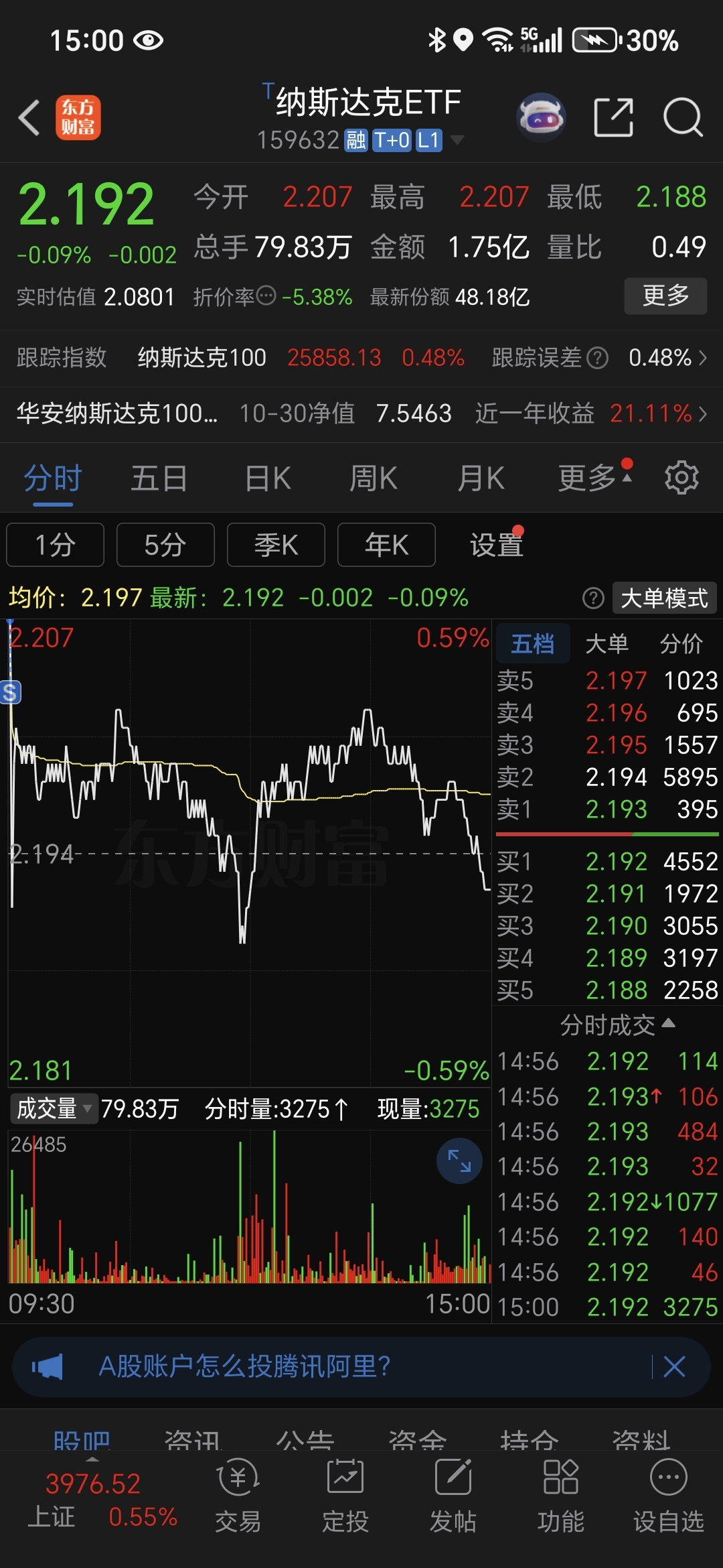 $纳斯达克ETF(SZ159632)$ 今天减仓了卖了最高点哈哈