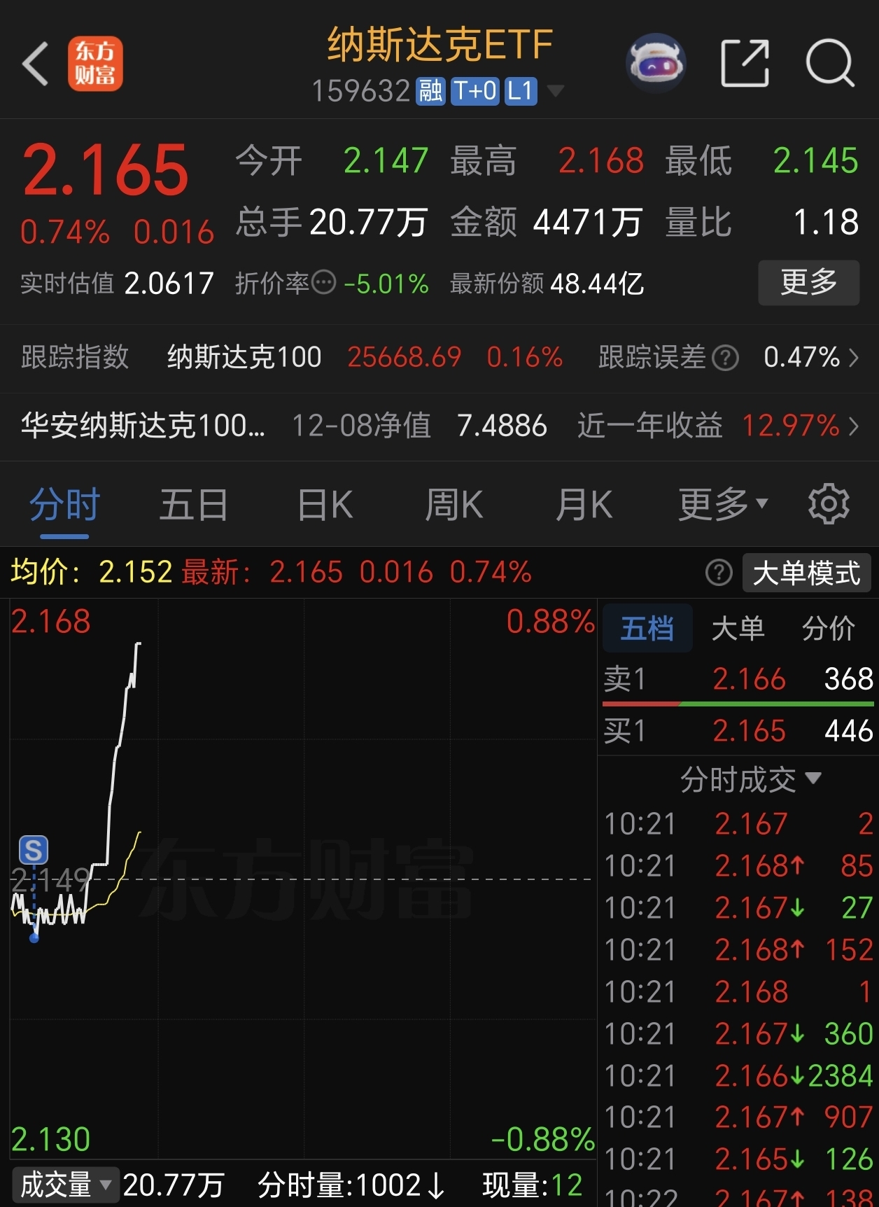 $纳斯达克ETF(SZ159632)$ 是因为我卖的原因吗?大哥