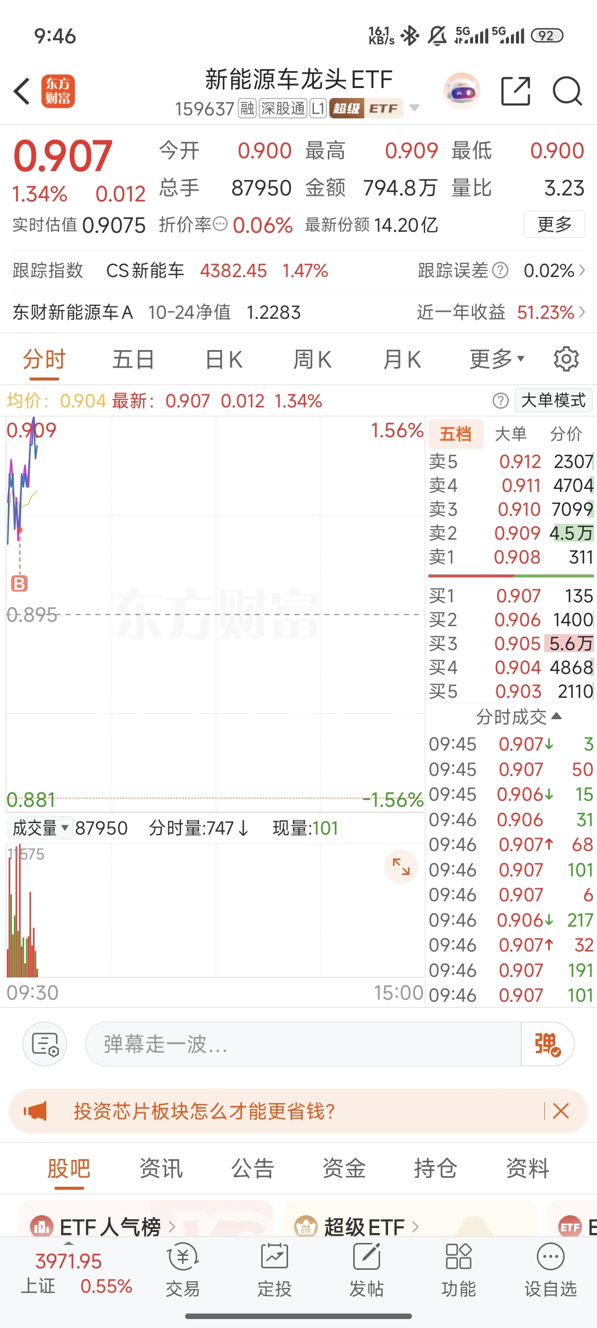 $新能源车龙头ETF(SZ159637)$ 追上来试试水