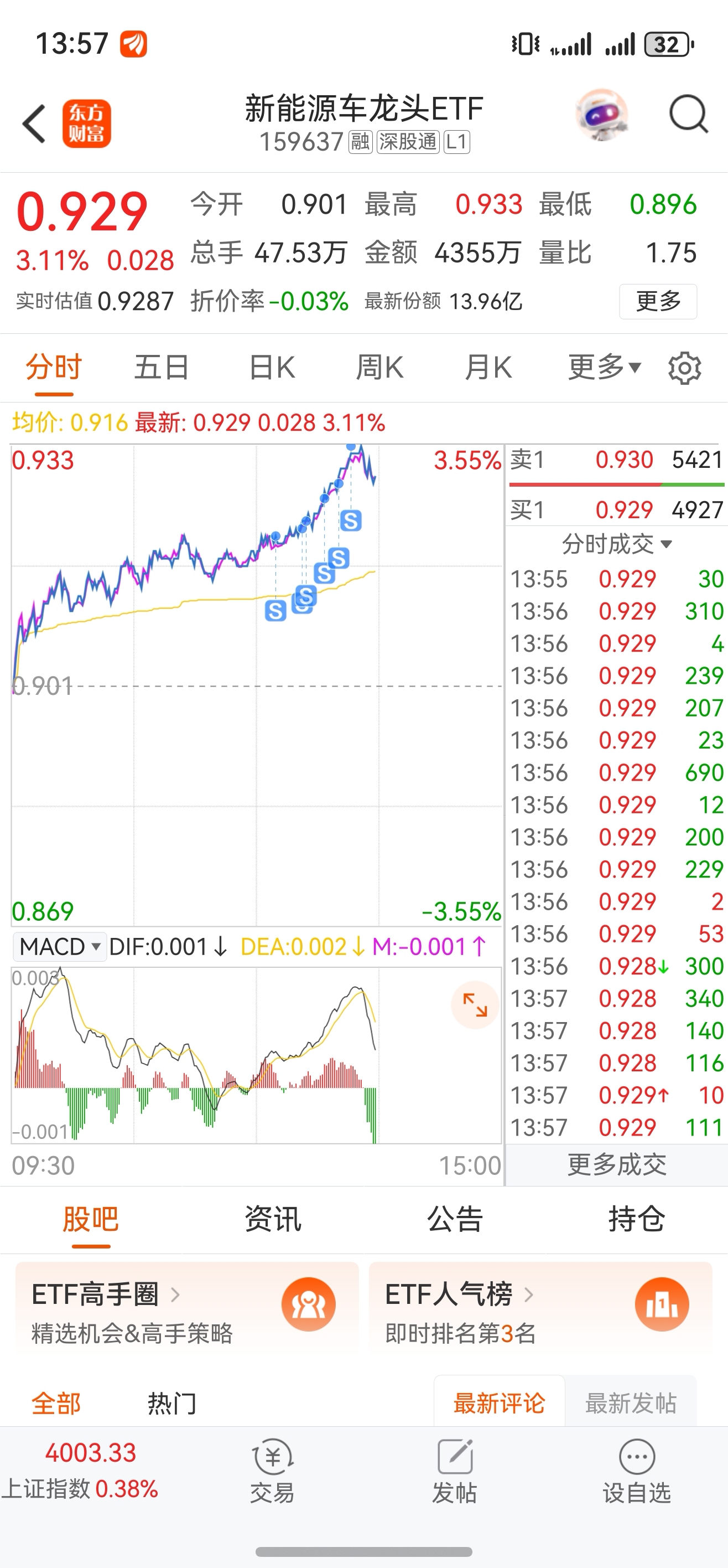 $新能源车龙头ETF(SZ159637)$ 先撤退了,留下的赚钱