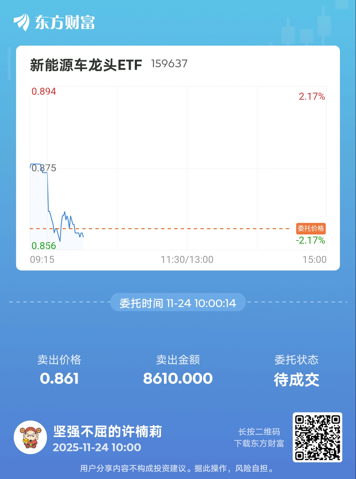 车龙头ETF(SZ159637)$ 戒了留下发财,清仓