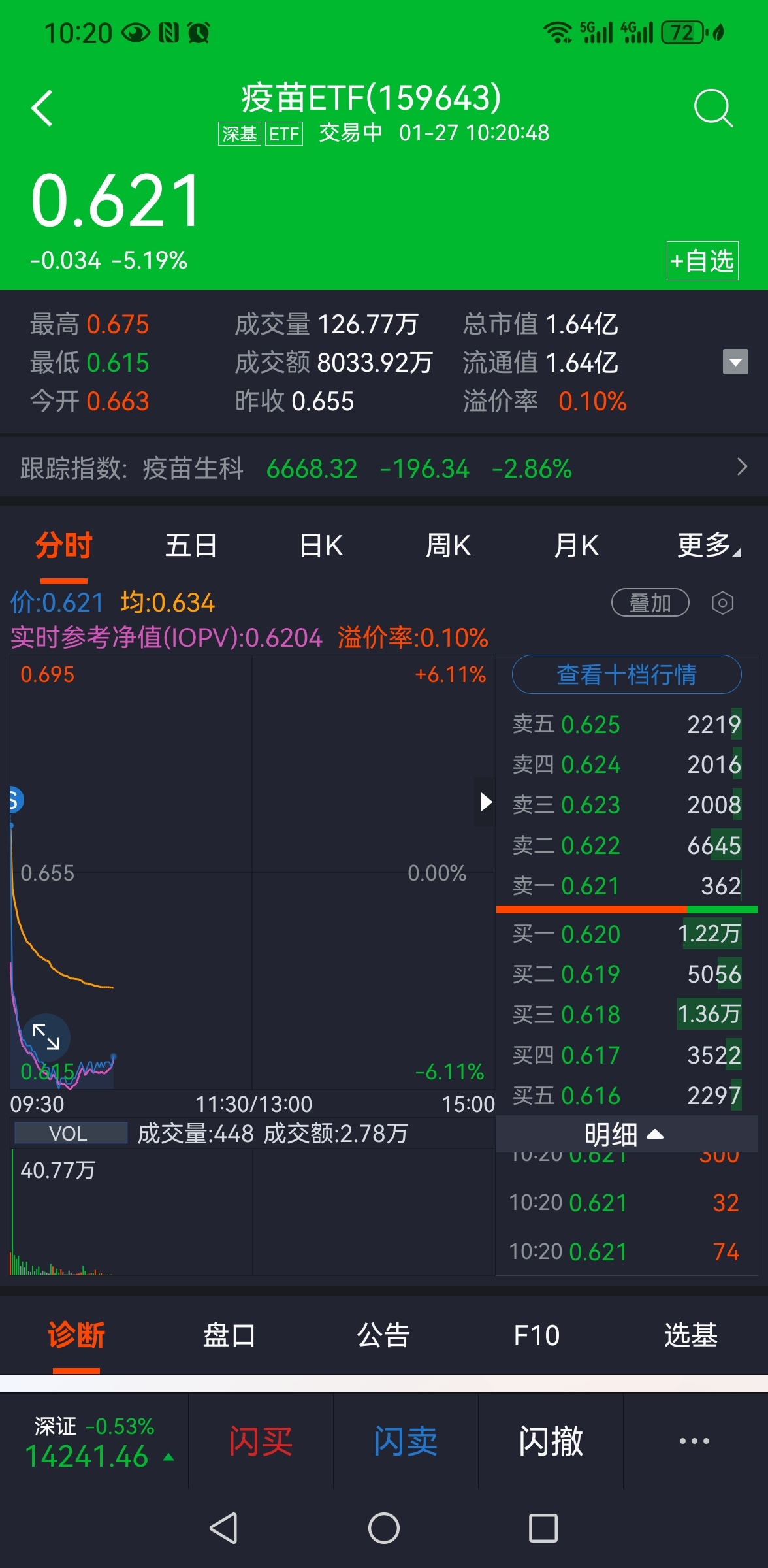 $疫苗ETF(SZ159643)$ 拉尾盘果然没好事,一大早跑了