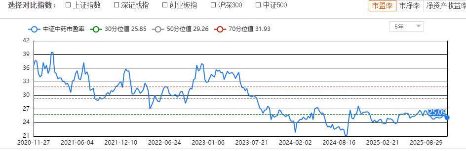 从估值维度看,中证中药指数(930641)截至2025年11月25日PE为25.09,仅位于近十年19.3%分位水平,显著低于沪深300指数同期估值水平。更值得关注的是其3.13%的股息率,在权益类资产中属于稀缺的高分红品类。这种“低估值+高股息”的组合,在无风险利率持续下行的市场环境中,形成了强大的配置吸引力。