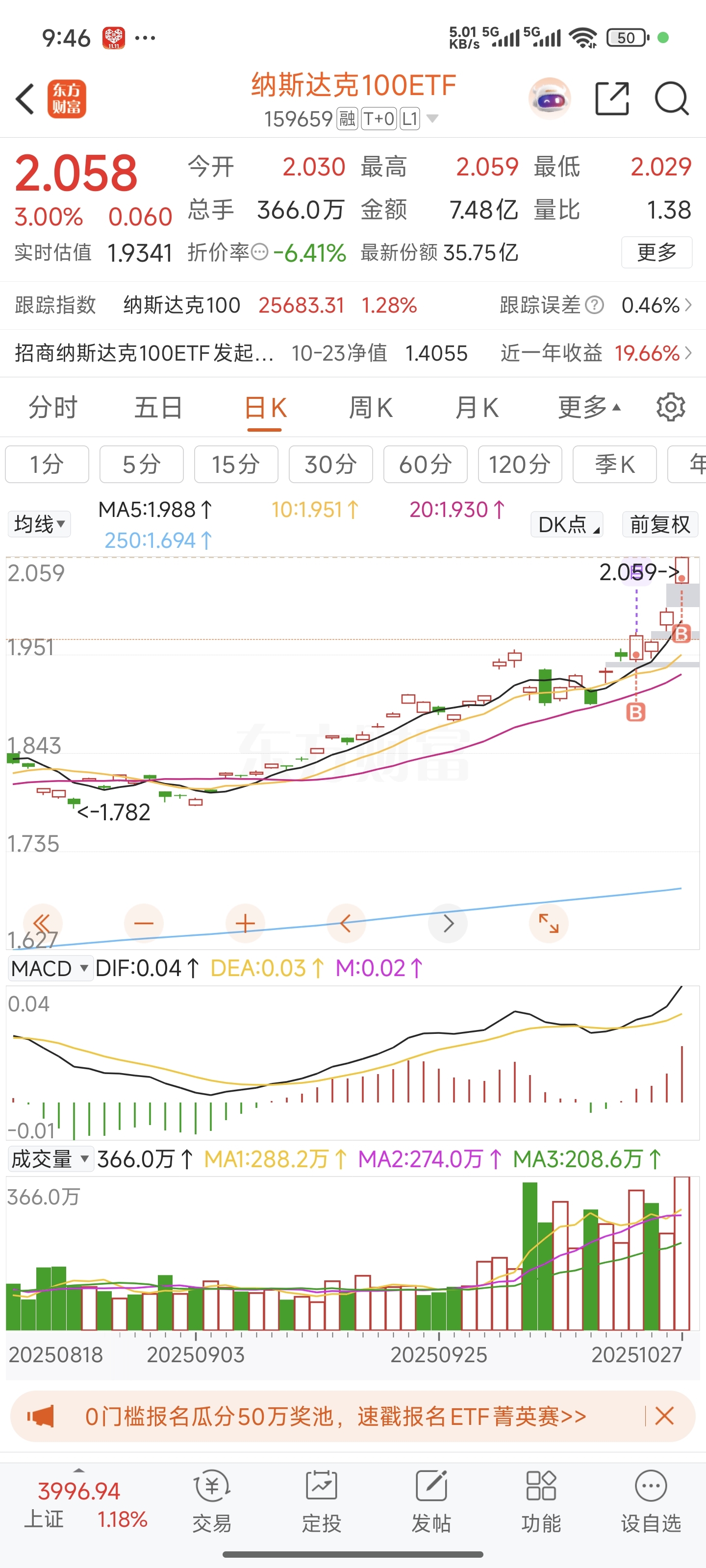 $纳斯达克100ETF(SZ159659)$ 追高也能吃到肉