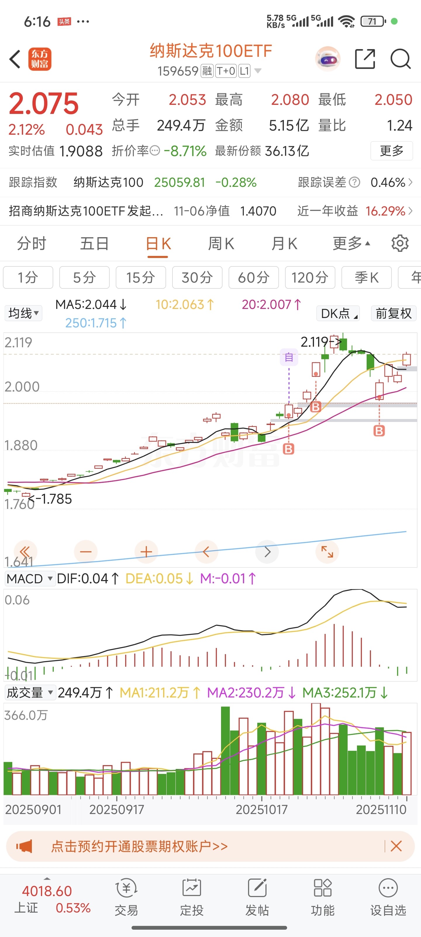 $纳斯达克100ETF(SZ159659)$ 敢跌就敢加。