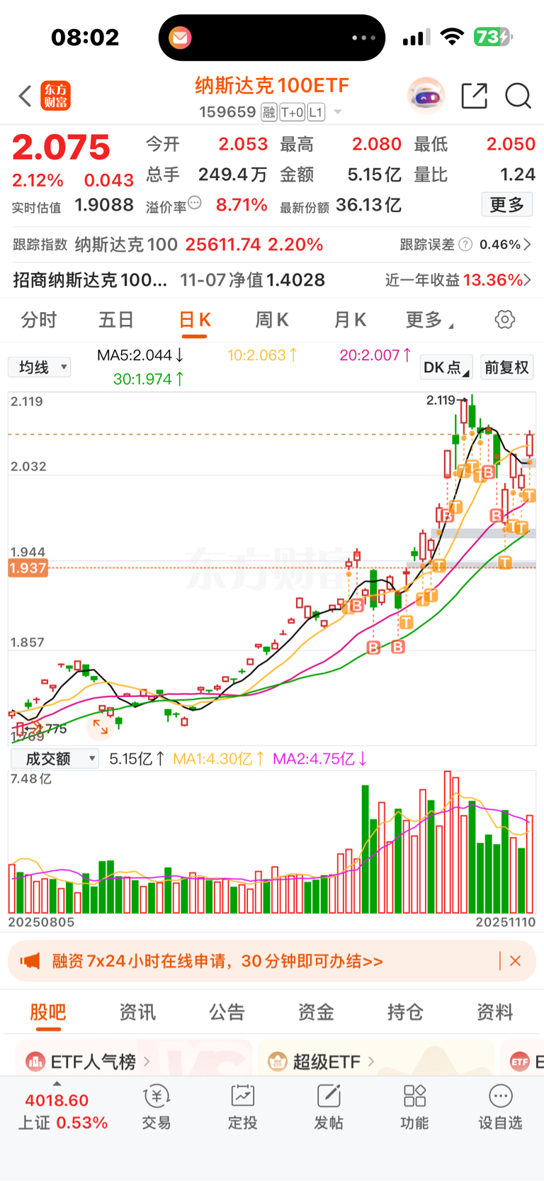 $纳斯达克100ETF(SZ159659)$ 现在怕不怕?会杀溢价吗?