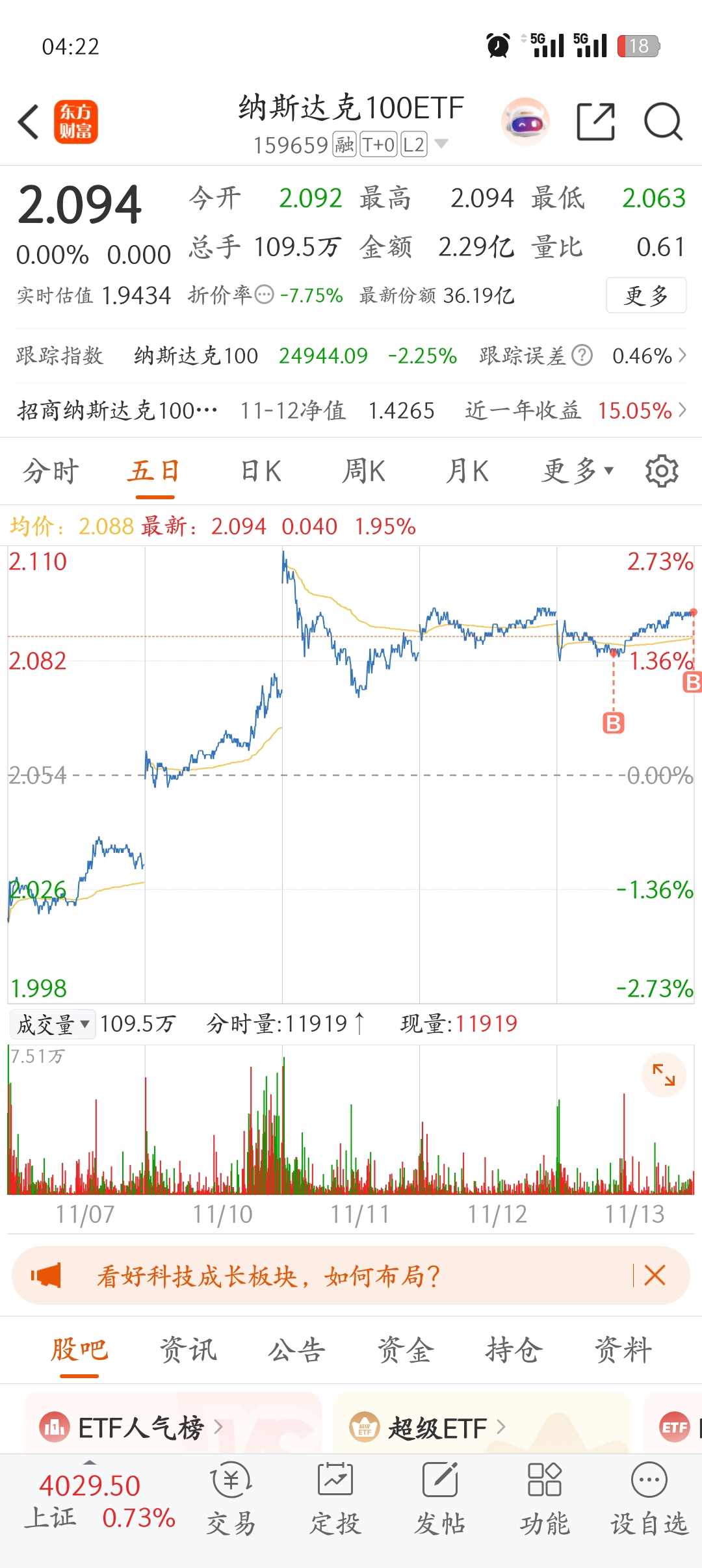 $纳斯达克100ETF(SZ159659)$ 等了好久都不回头,忍不住建了个底,果然一买就崩