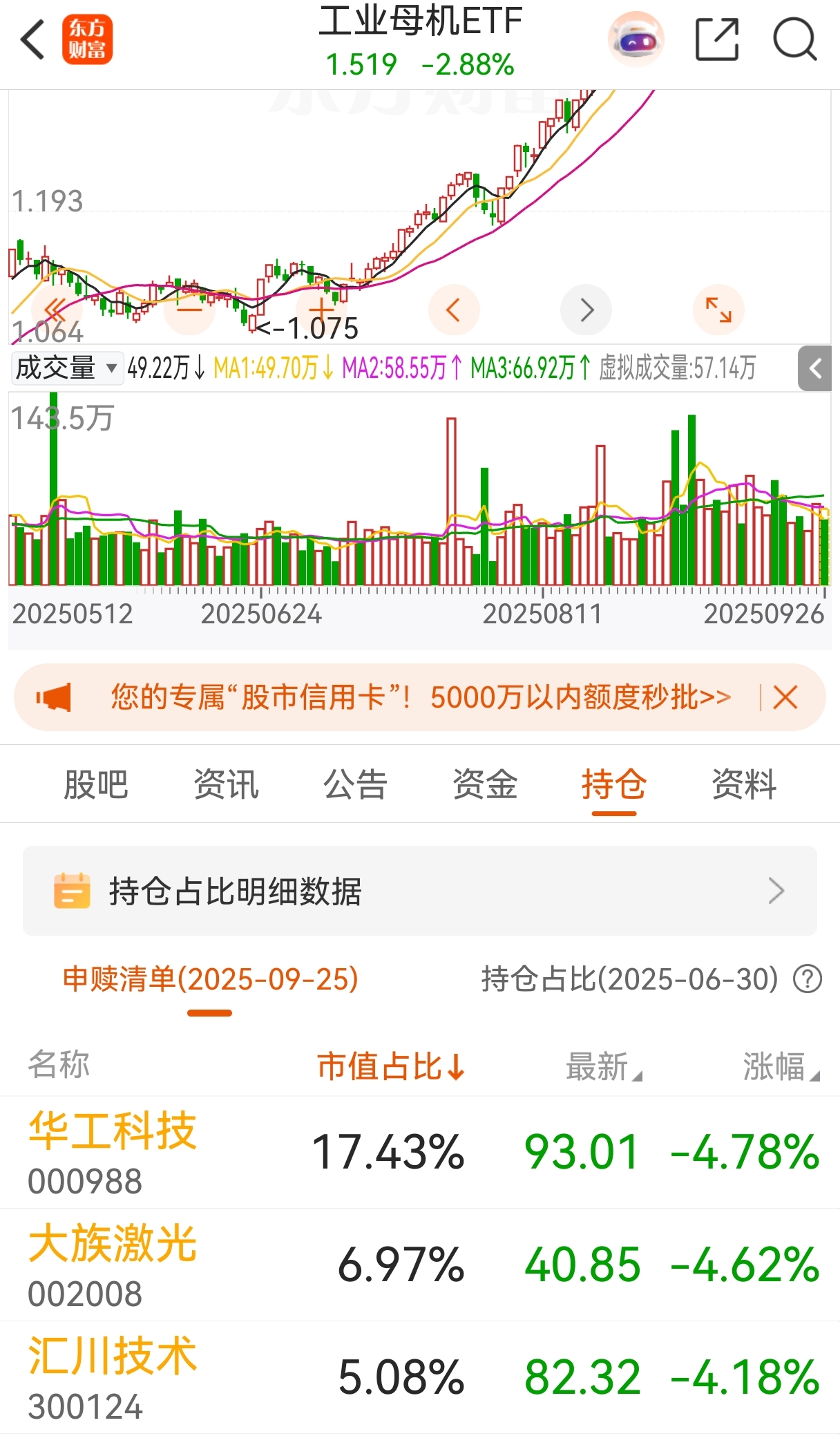 $工业母机ETF(SZ159667)$ 工业母猪前三大持仓均大跌4% !
