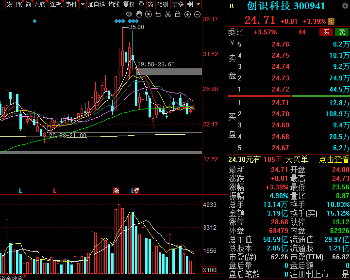 创识科技300941:该股属于数字,互联网,数据安全,数据要素,信创,人工智能,华为概念, 创识最近走势有点墨迹,虽然今天放出增亮,但是压力还是颇为重大,横盘西畴,今天也和大盘慢慢爬了一下,暂时先全部离开。