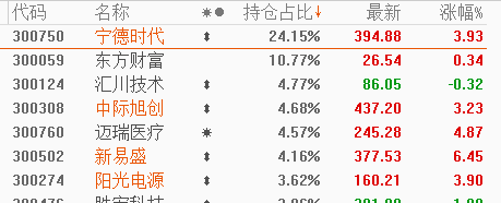 创业板50关联个股:宁德时代、东方财富、中际旭创、新易盛、迈瑞医疗、汇川技术、胜宏科技、阳光电源、同花顺、爱尔眼科。
