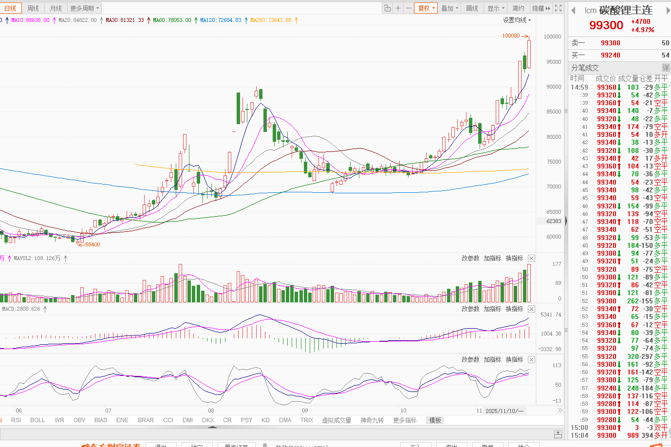 碳酸锂期货主力合约日内上涨5%至99300元/吨,六氟磷酸锂、磷酸铁锂等锂电材料价格同步上行,直接推动产业链进入新一轮景气周期。赣锋锂业董事长近期明确表示,2026年碳酸锂价格有望突破15万元/吨甚至20万元/吨,较当前价格存在50%以上的上行空间。这一判断并非空穴来风——近期锂电产业链“长协”“锁单”现象频现,头部企业通过预付款锁定未来三年产能,中游材料厂商业绩修复逻辑持续验证。万联证券指出,锂电中游材料环节的电池、结构件厂商盈利有望持续增强,建议积极关注该环节的业绩修复机会。创50ETF重仓股宁德时代、亿纬锂能今日涨幅居前,正是这一趋势的直接体现。