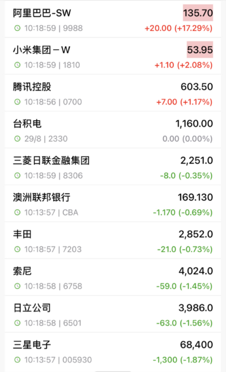 $亚太精选ETF(SZ159687)$ 受财报的超预期盈利,AI+云业务强劲增长和宣布近期要发布自研AI芯片等叠加影响,亚太精选etf前三大持仓,阿里巴巴上涨17.29%。$南方亚太精选ETF联接(QDII)A(OTCFUND|021189)$ $南方亚太精选ETF联接(QDII)C(OTCFUND|021190)$ #阿里净利降18%,股价反涨12.9%#