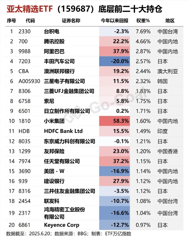 亚太精选成分股包括台积电,三星电子,海力士,联发科。亚太半导体和AI科技企业含金