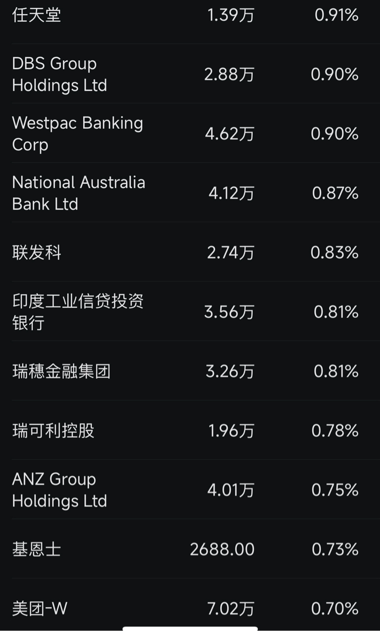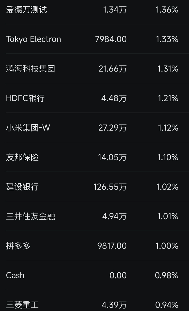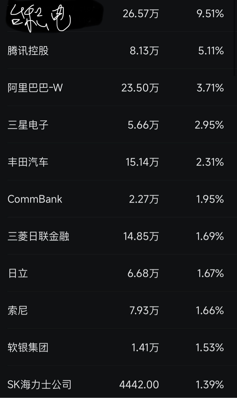 11月10号持仓,些许变化,韩国SK海力士调到了第11位
