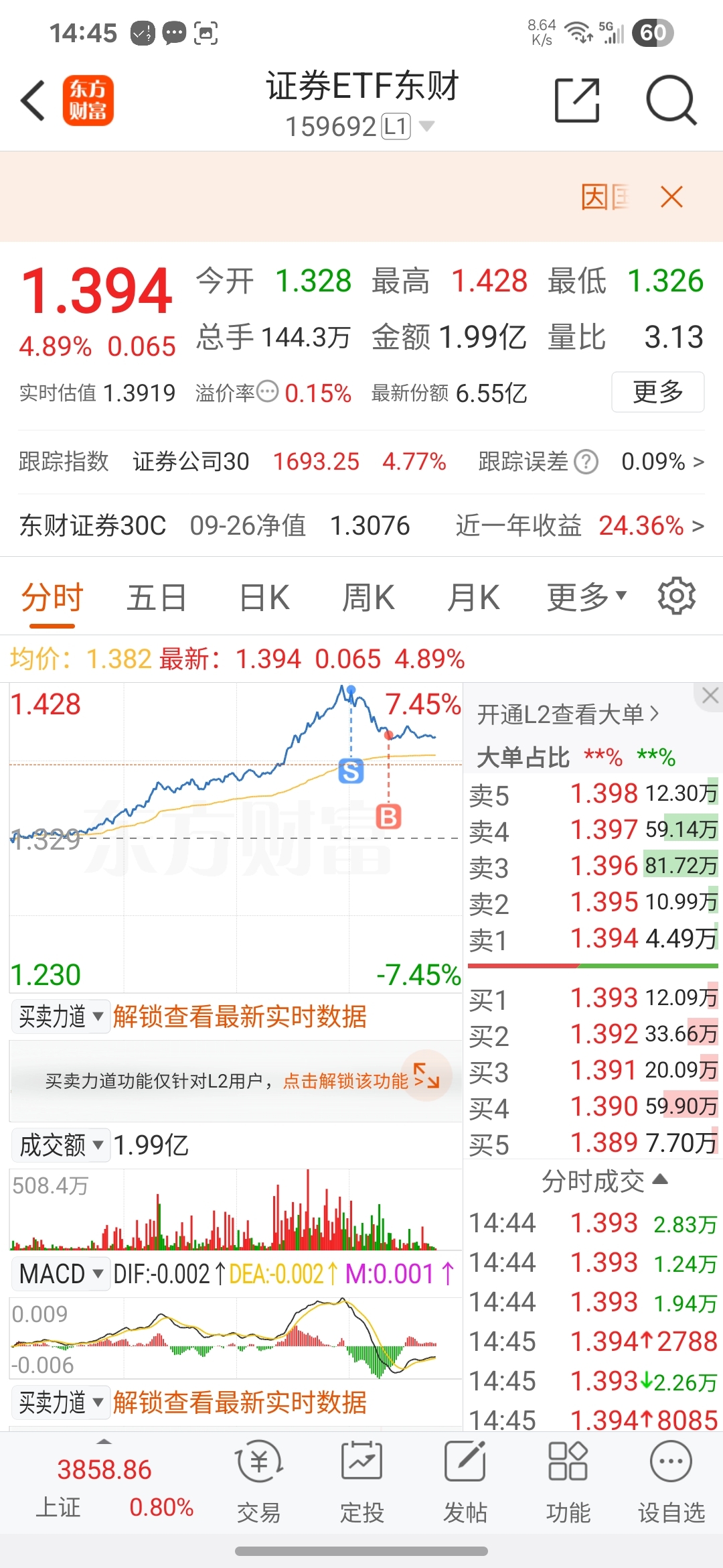 $证券ETF东财(SZ159692)$ 冲,今天券商抢筹了,站稳1.396就是支撑位了