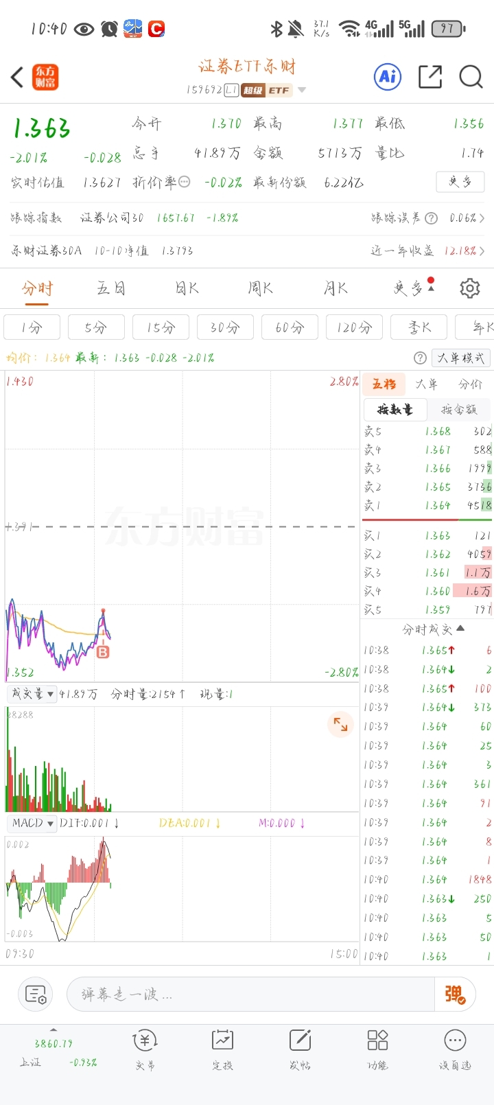 $证券ETF东财(SZ159692)$ 一买就跌,漂亮。