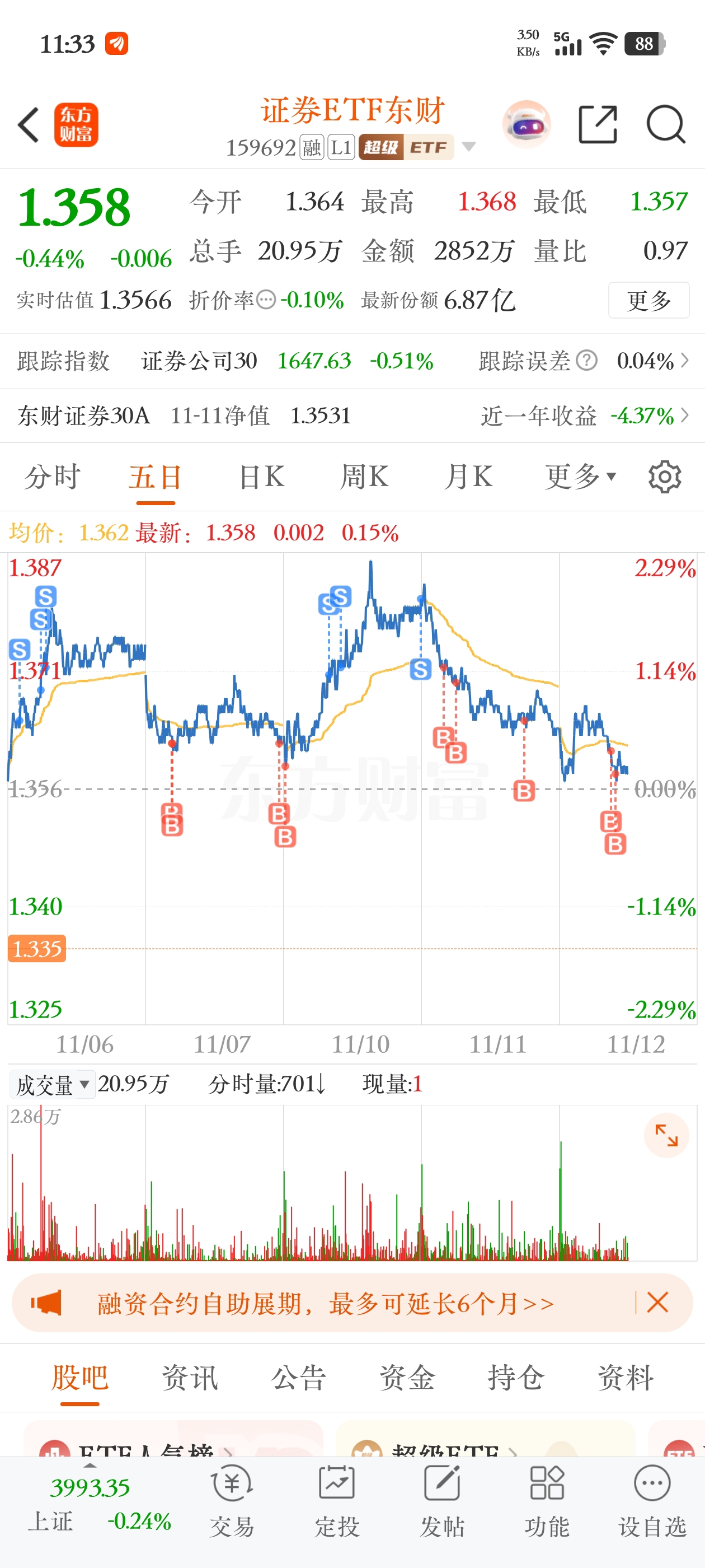 $证券ETF东财(SZ159692)$ 证券没有大利空,不像科技一样会大起大落,适合做T
