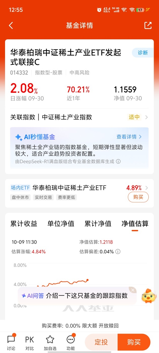 今儿稀土行情可太给力了,华泰柏瑞稀土基金估值大涨近5%。商务部刚发布政策,对稀土技术出口进行控制,全方位加强稀土管理。新兴产业发展势头这么猛,稀土作为战略资源,价格那是有望继续涨的。想投资稀土的朋友,华泰柏瑞这只基金专注稀土领域,现在布局时机很不错,赶紧跟上这波行情吧!#10月基金投资策略#