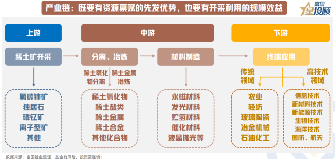 上游——稀土矿采选与伴生资源利用:是稀土原料的主要供应端;