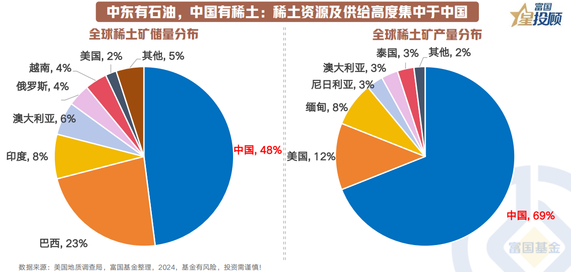储量:根据USGS的2024年数据,全球已探明稀土储量约9,000万吨,其中中国以4,400万吨居首,占比近50%。