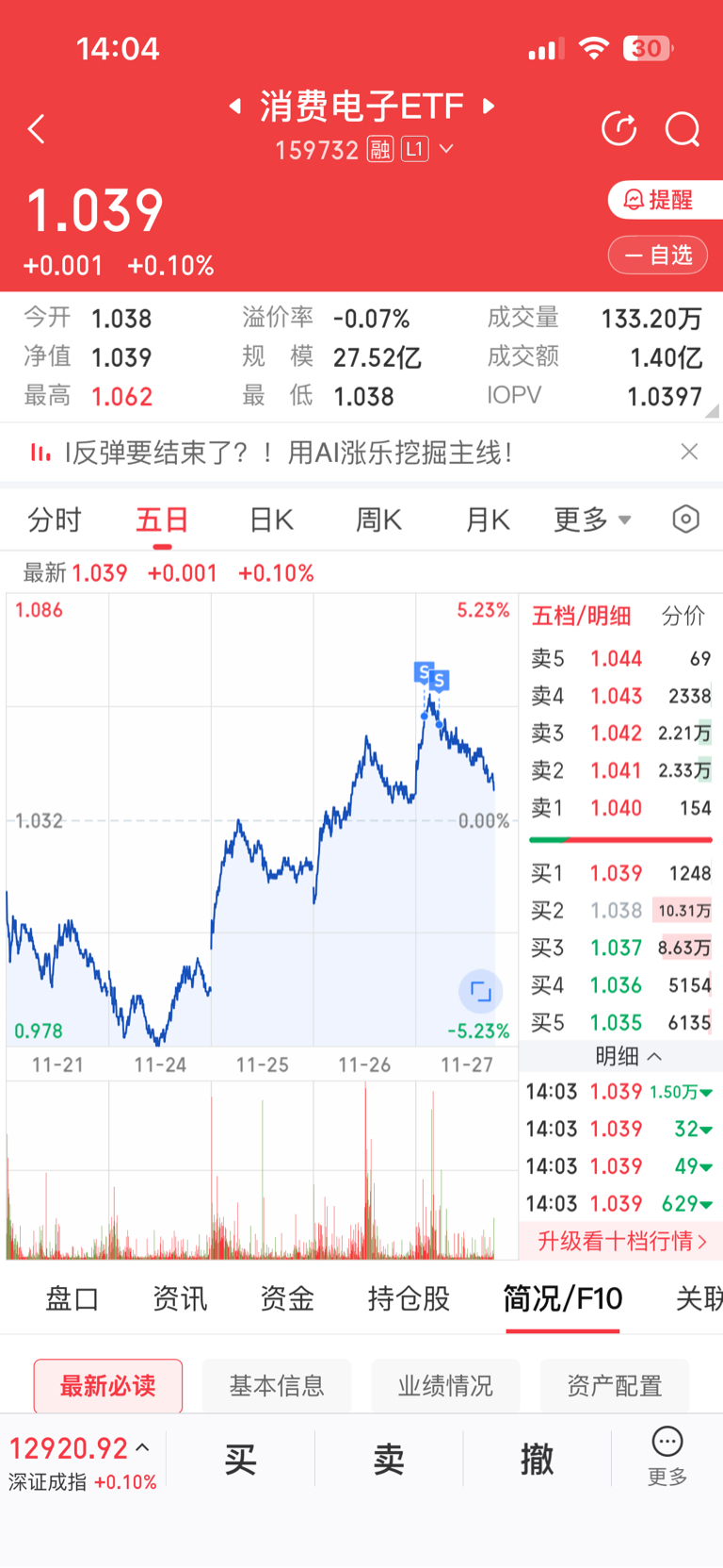 $消费电子ETF(SZ159732)$ 跌破1好嘛