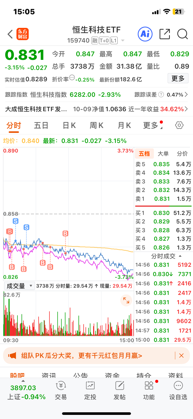 $恒生科技ETF(SZ159740)$ 没有最,只有更底