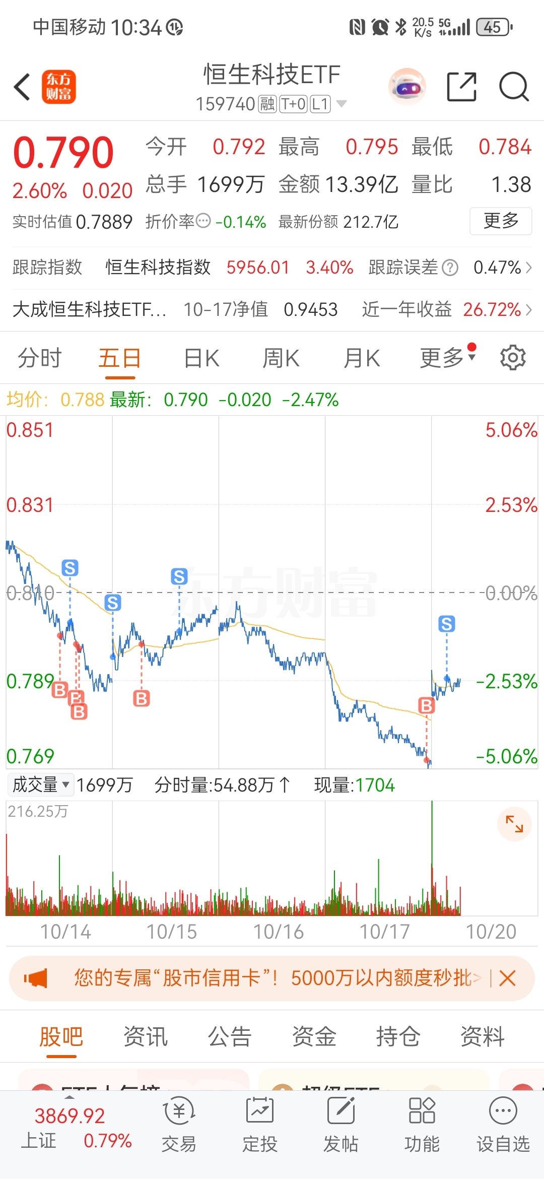 $恒生科技ETF(SZ159740)$ 落袋为安,不跟他耗了,看看下午有机会没有