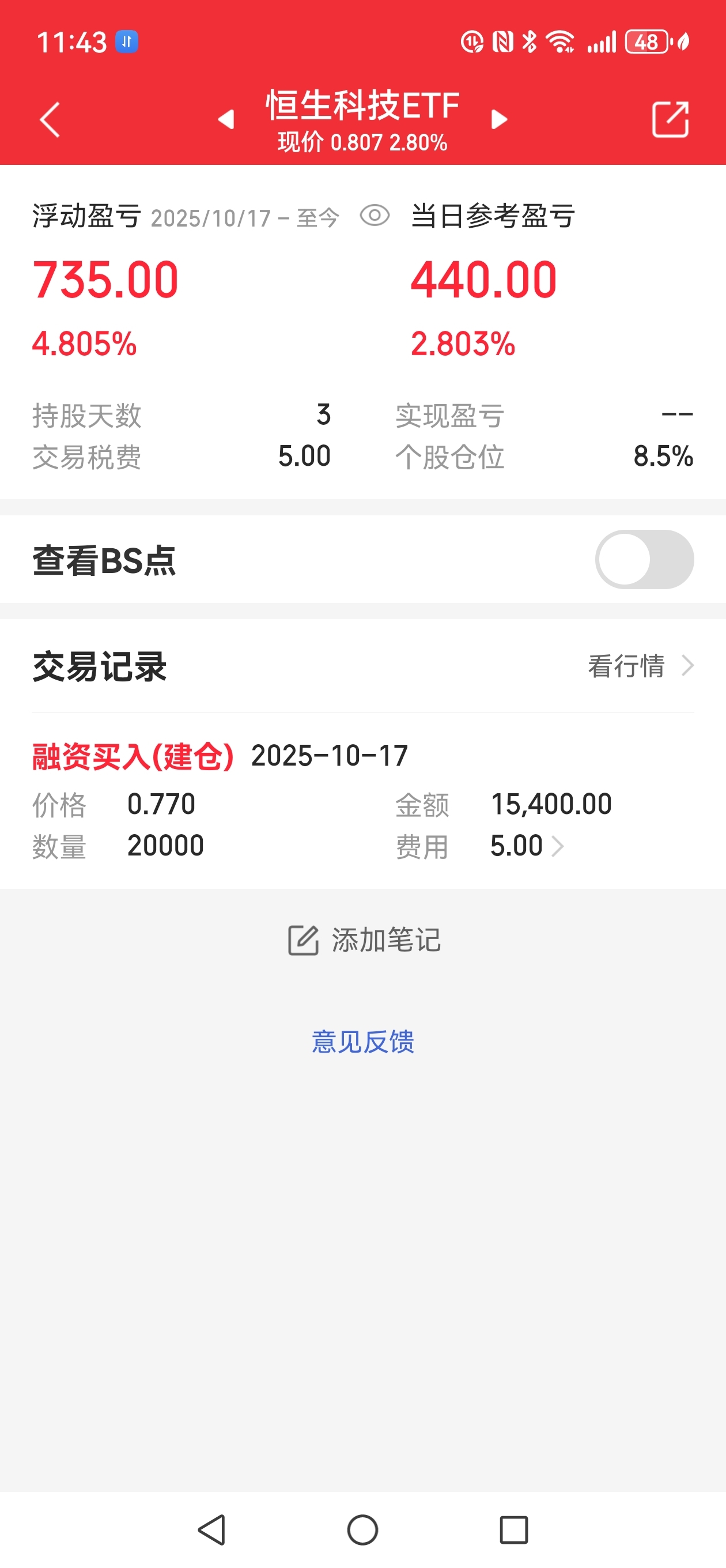 今天是我买入恒生科技ETF的第三天,我不着急先拿着吧。运气好,这三天的收益率还是
