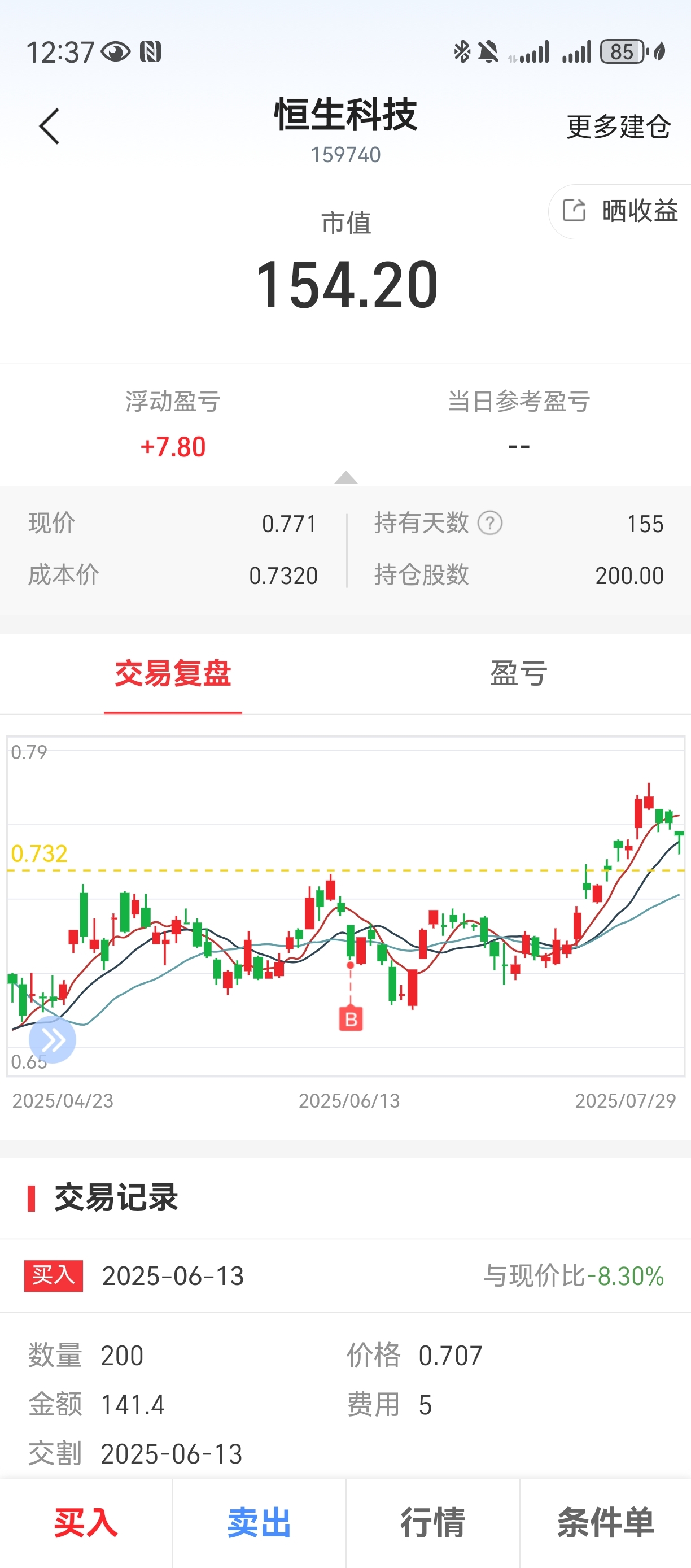 $恒生科技ETF(SZ159740)$ 还浮盈7块