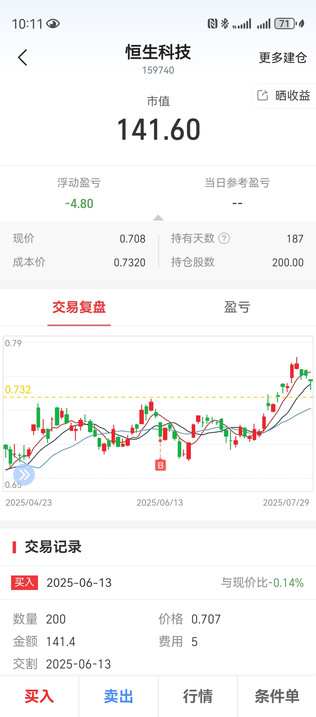 $恒生科技ETF(SZ159740)$ 从买入到现在就绿了