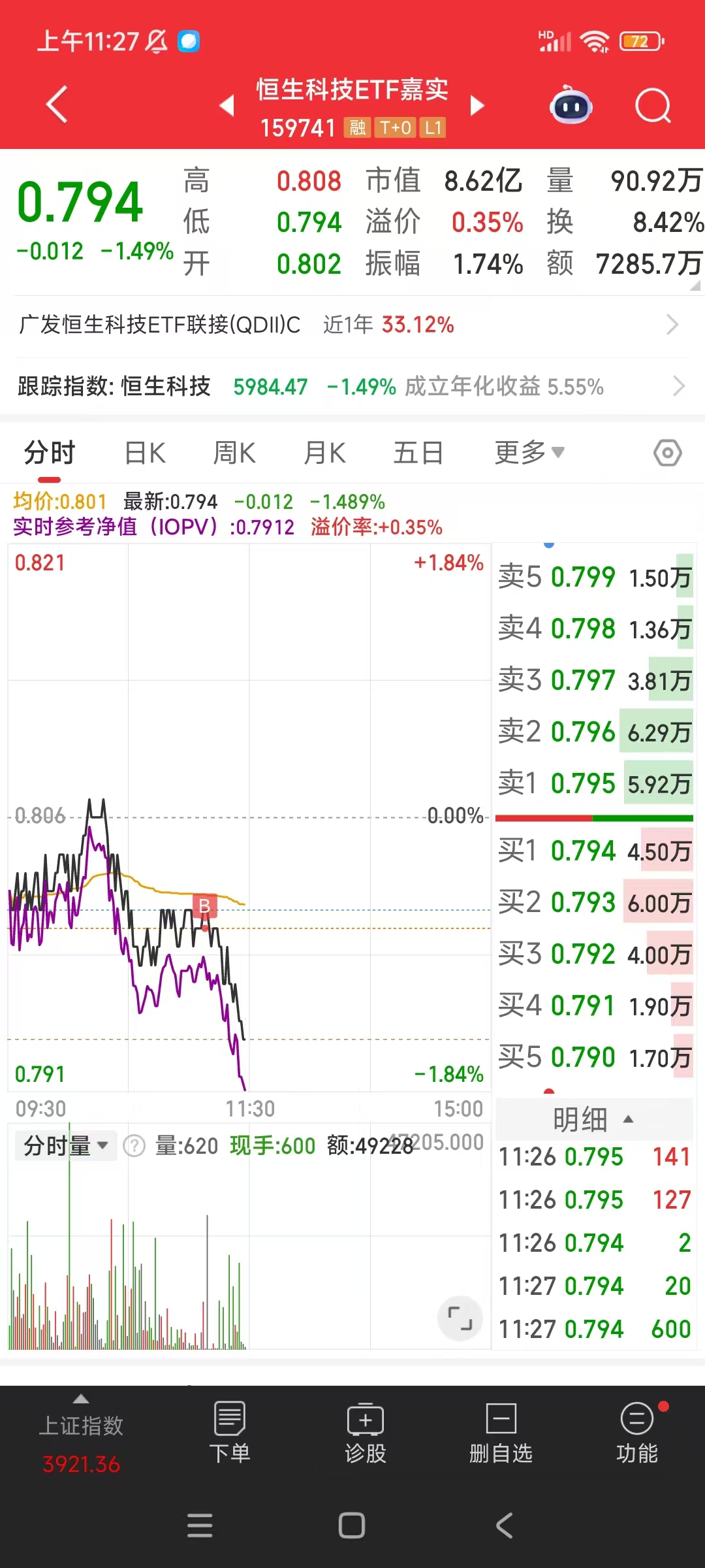 $恒生科技ETF嘉实(SZ159741)$ 完蛋了,800买了1/4仓,785再买5成仓,哎,被埋了