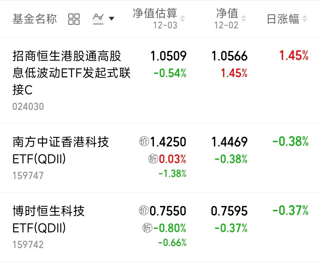 震荡市最磨人,自己选股容易踩雷,追涨杀跌更是亏多赚少。高股息低波基金不用费心研究行业和个股,基金经理会精选优质标的,聚焦现金流充足、分红稳定的企业,基金净值波动小,长期持有还能享受分红收益。$招商恒生港股通高股息低波动ETF发起式联接C(OTCFUND|024030)$昨日上涨1.45%。