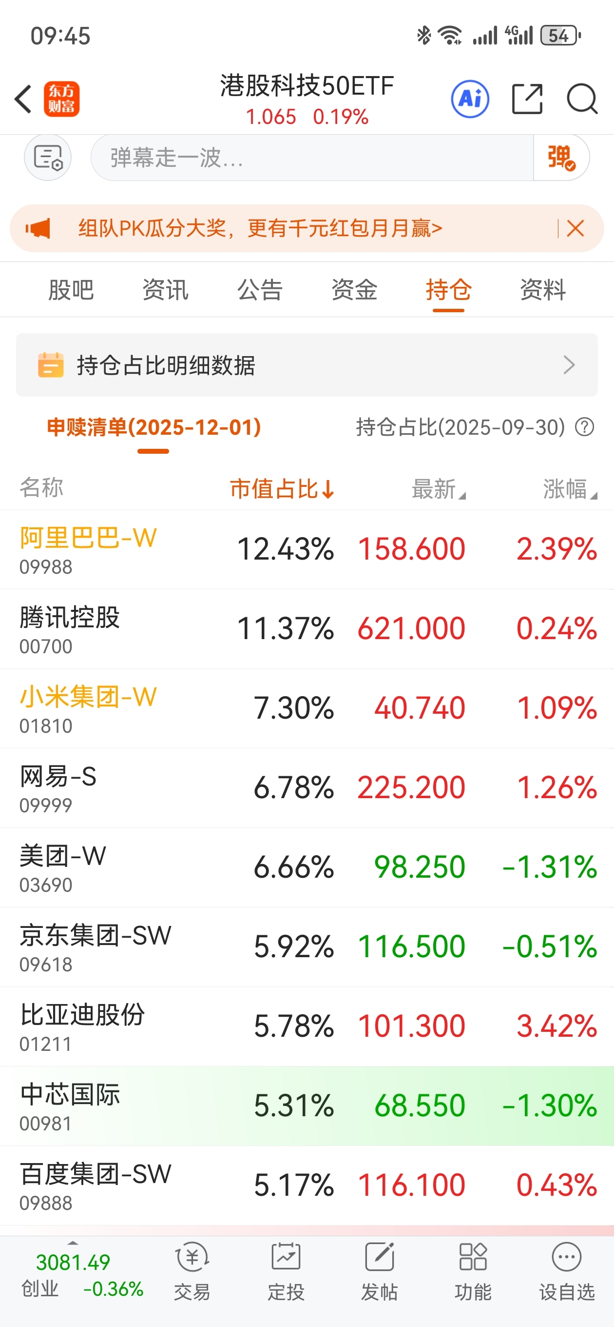 $港股科技50ETF(SZ159750)$ 至于吗?微红?