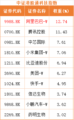 港股科技关联个股:小米集团-W、阿里巴巴-W、比亚迪股份、腾讯控股、美团-W、中芯国际、百济神州、快手-W、小鹏汽车-W、理想汽车-W。