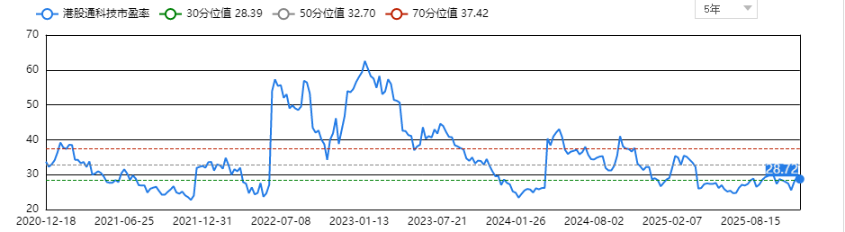 估值层面的数据更具说服力。港股通科技指数最新市盈率28.72倍(TTM),年初至今估值扩张仅8%,而同期指数涨幅达36.08%。这种“盈利主导型上涨”特征,在A股创业板指约40倍PE、纳斯达克指数约42倍PE的横向对比中尤为突出——港股科技板块的估值洼地效应,在全球主要科技股指中形成显著优势。