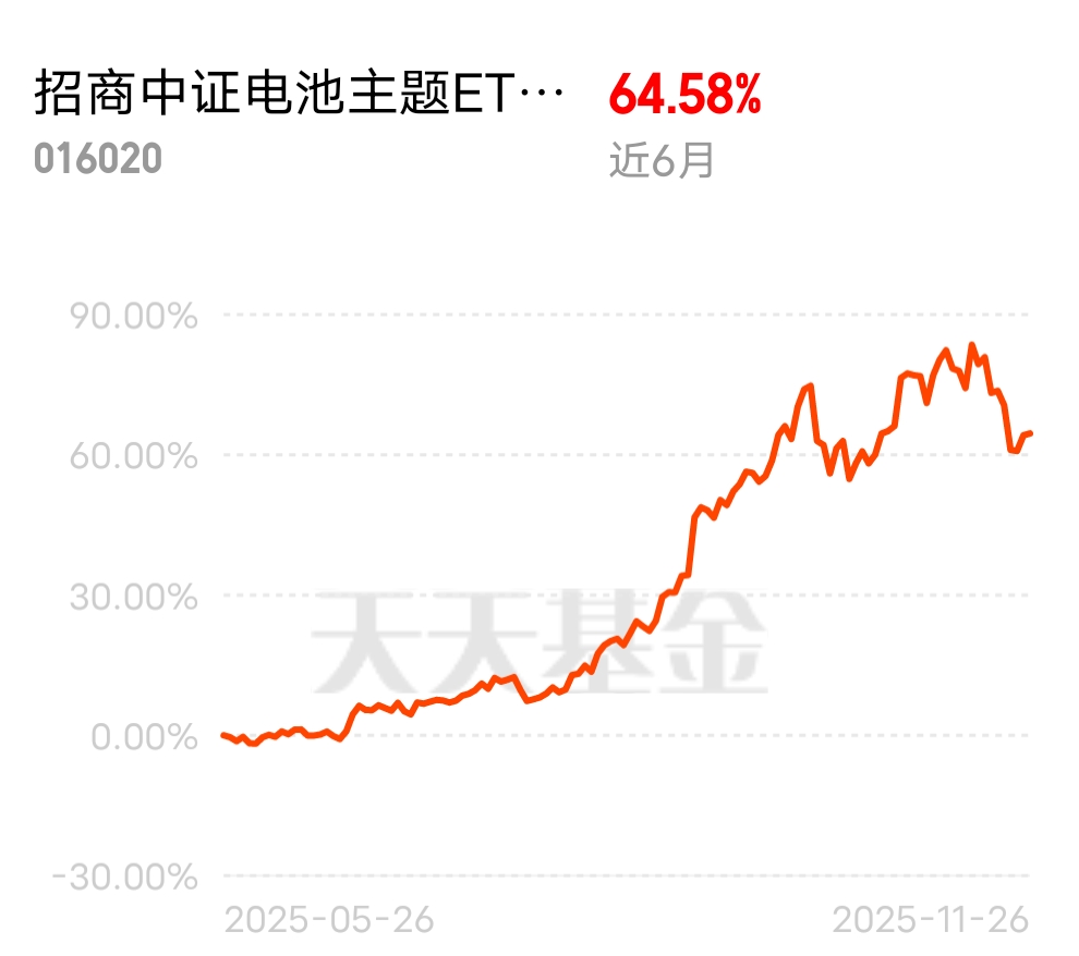 锂电池产业链龙头企业竞争力越来越强,海外市场拓展顺利,业绩增长有保障,板块热度不减。招商中证电池主题ETF联接C近6个月收益64.58%,全面覆盖核心龙头,不用个股择时也能受益。