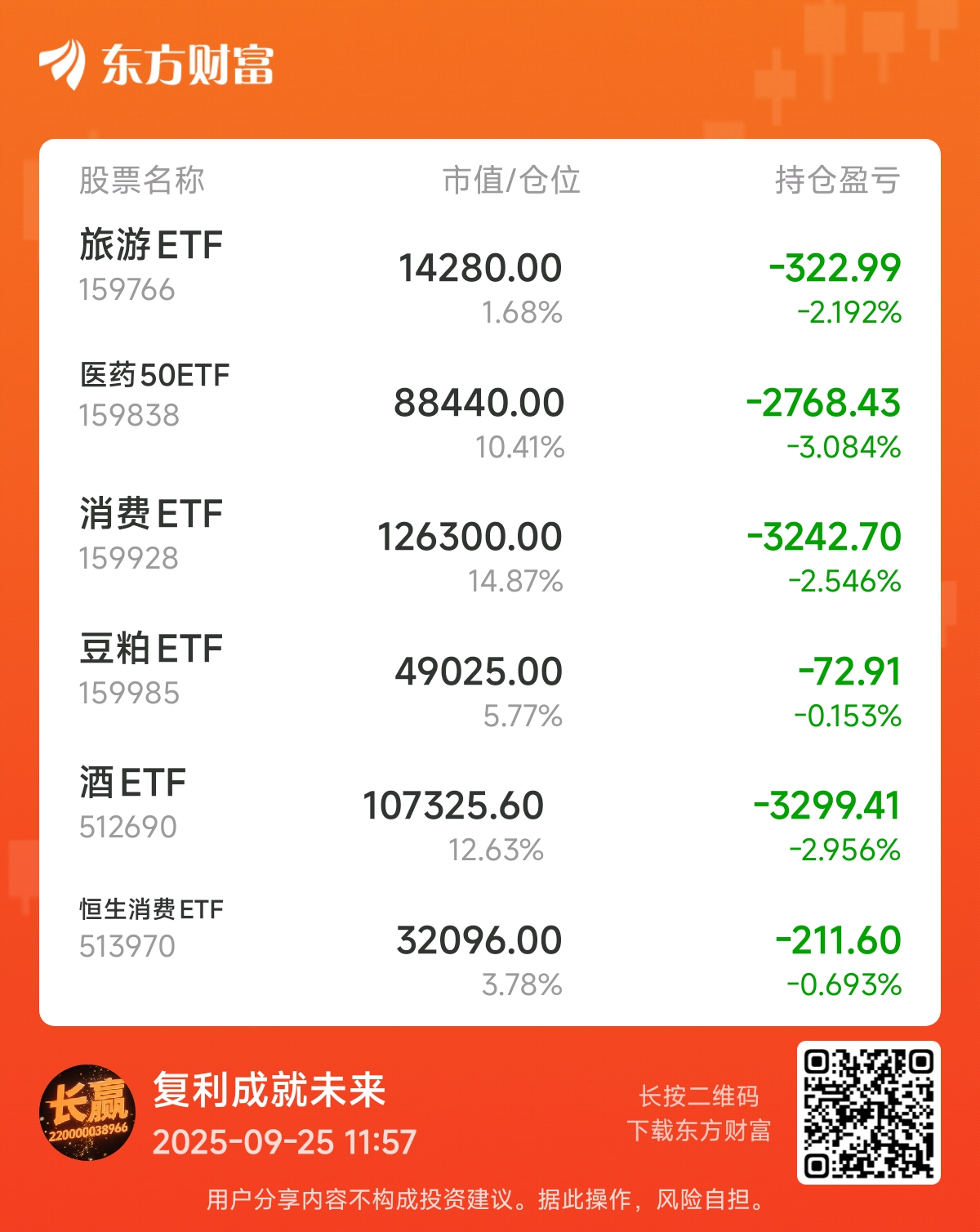 $旅游ETF(SZ159766)$ 消费类严重拖了后腿,计划86以后卸杠杆,始终来回晃悠就是难以达到。希望消费医药旅游发力一下。$消费ETF(SZ159928)$ $恒生消费ETF(SH513970)$