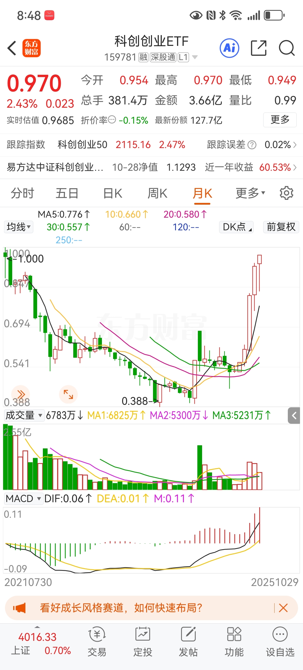 $科创创业ETF(SZ159781)$ 本月有机会创历史新高了