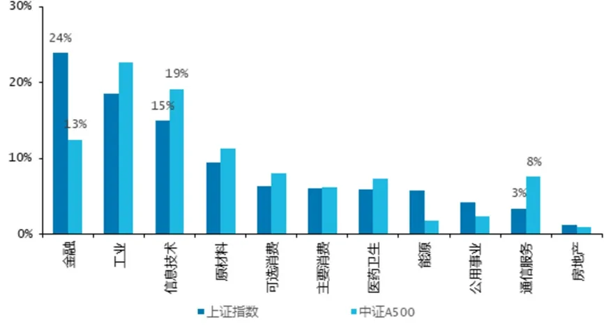 例如中证A500指数中,金融行业权重13%,低于上证指数的24%,信息技术及通信服务权重27%,高于上证指数的18%,可以更多分享经济高质量发展红利。