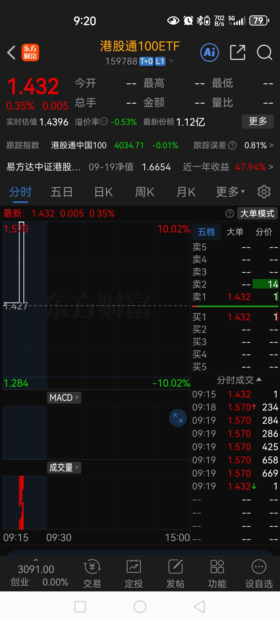$港股通100ETF(SZ159788)$ 那2000多手的成交量真6